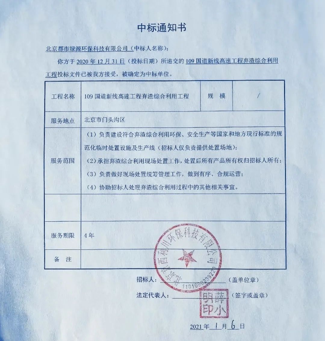 2021开年之际,都市绿源公司成功中标“109国道新线高速工程弃渣综合利用项目”,迎来了新年开门红,为公司外延经济板块的开拓发展再立新功!