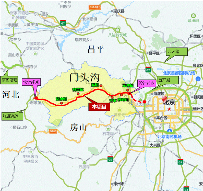 109国道项目起于西六环路军庄立交,途经妙峰山、燕翅、斋堂、清水止于张涿高速,全线65.5公里,对于缓解北京西部通道交通拥堵、改善民生福祉、实现北京市“四个中心”战略定位、促进京津冀区域交通一体化具有重要意义。