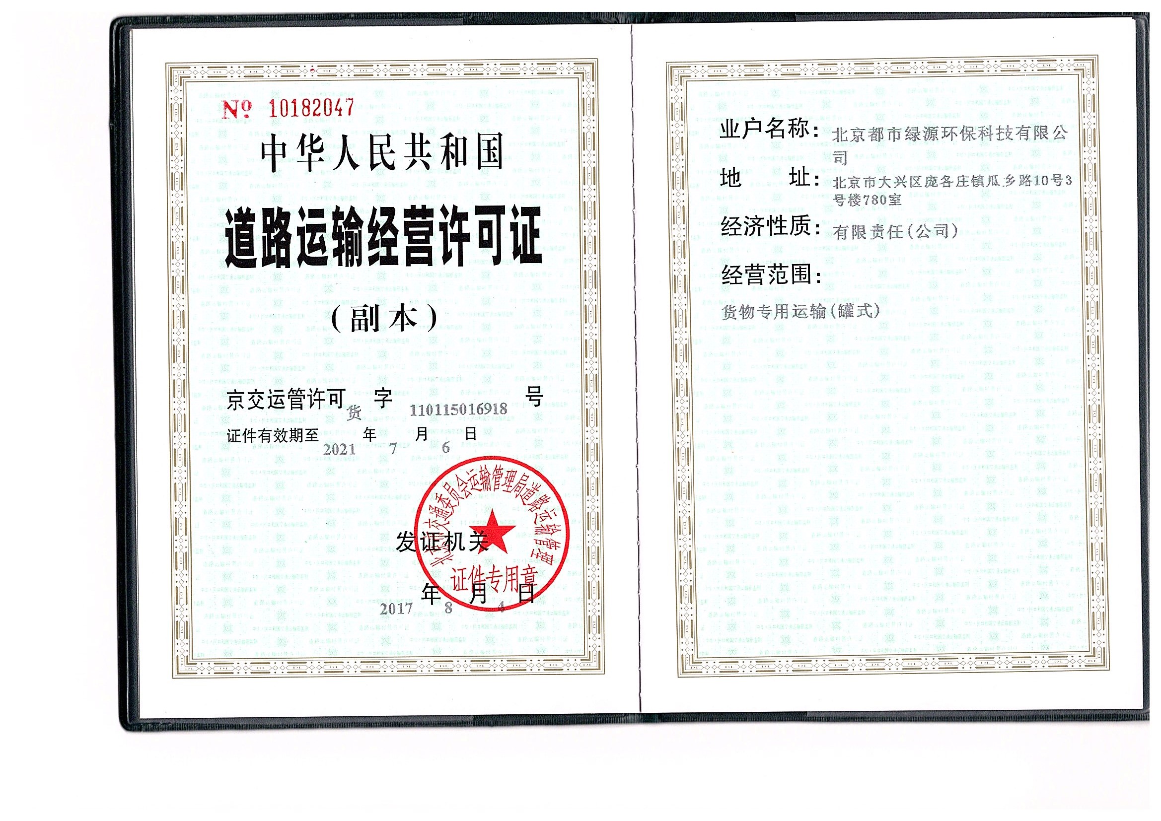 道路运输经营许可证