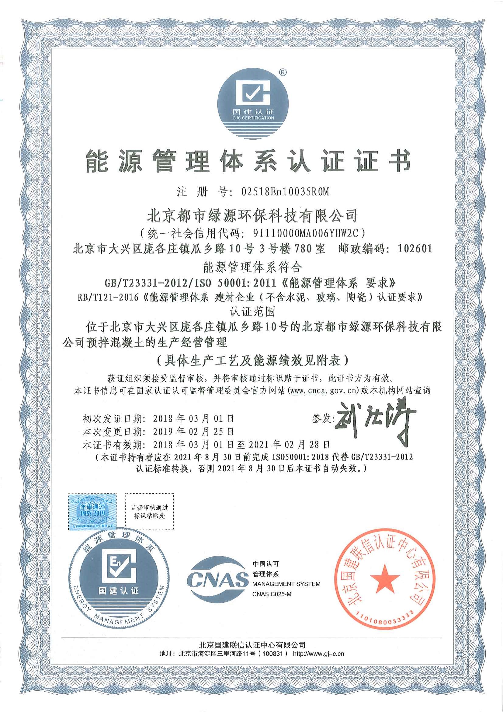 能源管理体系认证证书