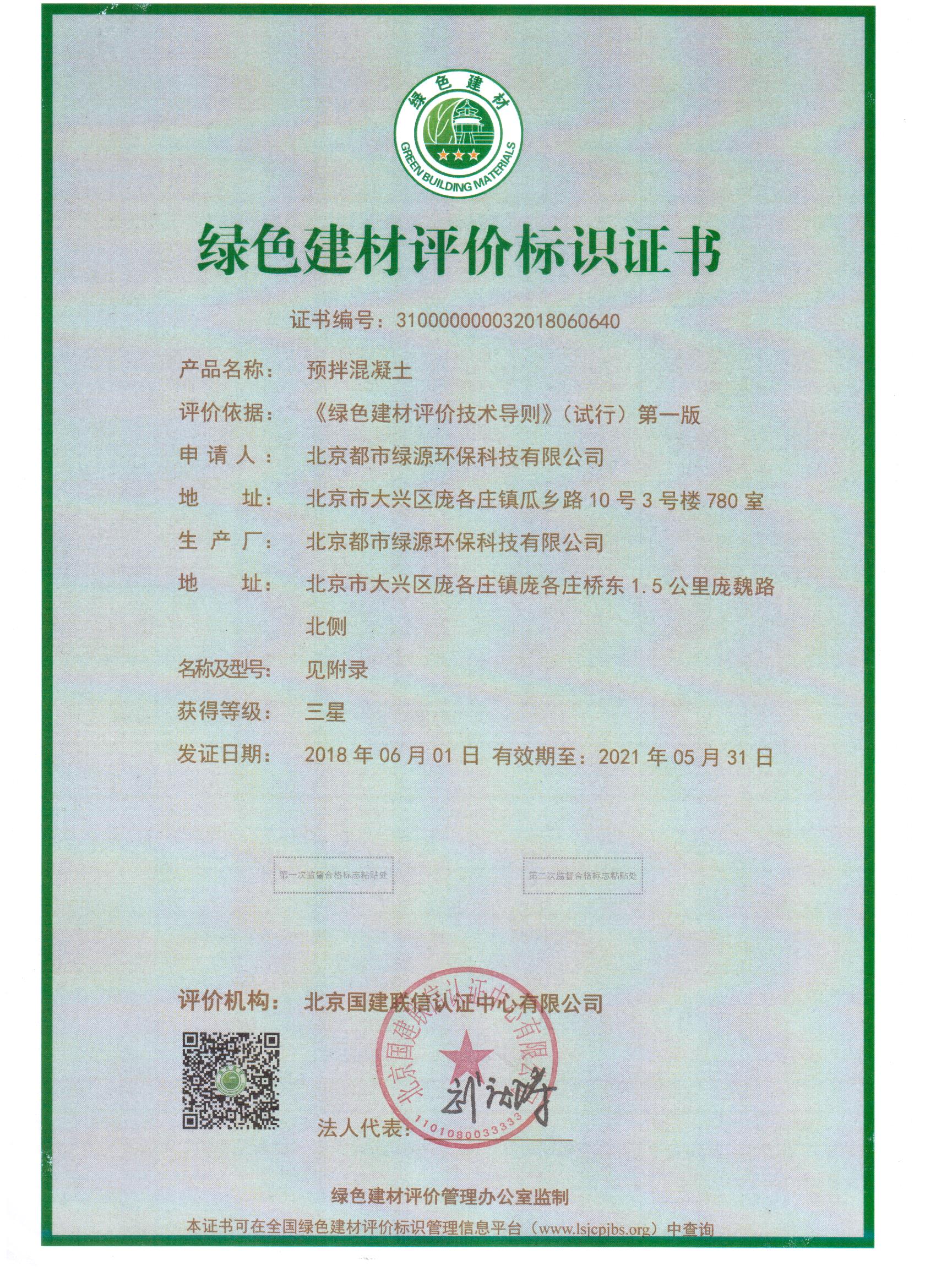 绿色建材评价标识证书