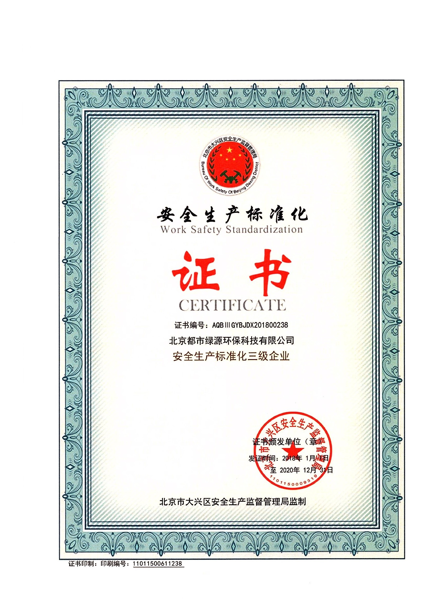安全生产标准化证书