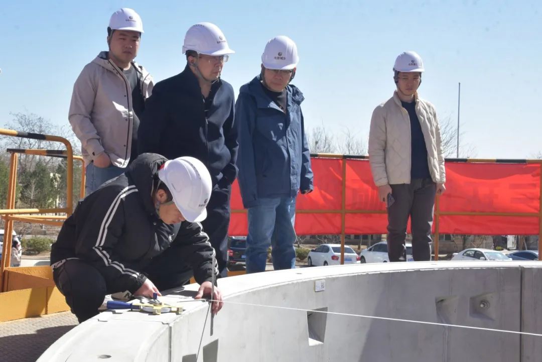 轨道公司、设计、监理、施工单位相关领导听取公司产品及发展情况介绍、三环试拼装等自检验收情况汇报后,前往三环拼装现场及试验场地、全方位对管片三环拼装内外径、拼装间隙、表面平整度、成型质量等进行检测;现场观看管片检漏试验、拉拔试验;随后,去往生产车间对钢筋笼尺寸及焊接质量、管片模具精度进行检测,产品质量各项指标均符合设计及规范要求。