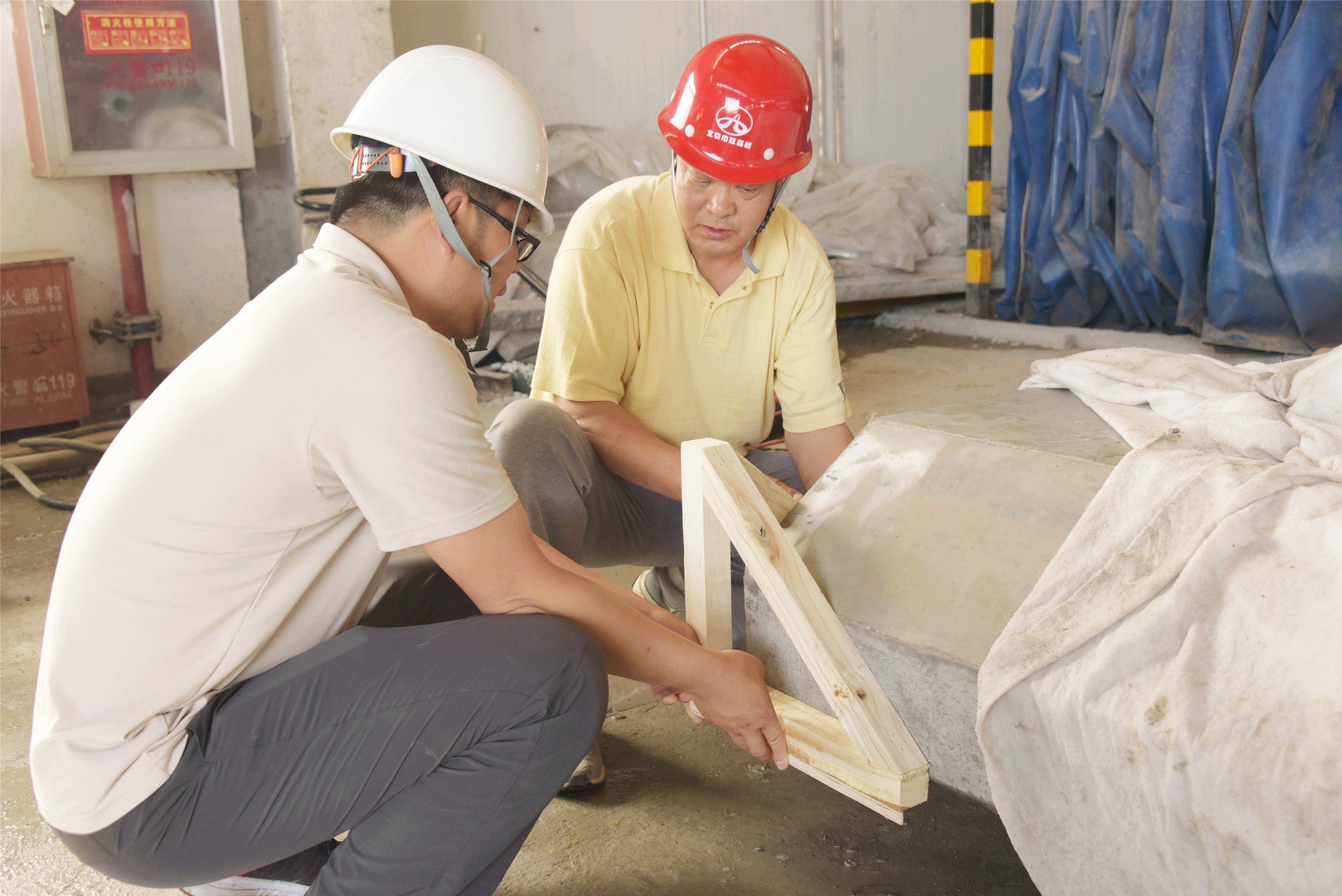 伴随行车吊钩缓缓升起,预制短板第一块产品从模具中 “脱壳”而出,质检人员随后进行成品质量检测,符合产品设计要求。现场人员满心欢喜,这标志着我公司产品目录再添一名新成员。