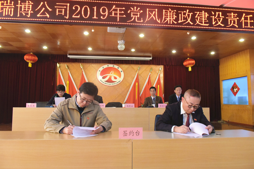 与各党支部书记签订了《2019年党风廉政建设一岗双责目标责任书》;