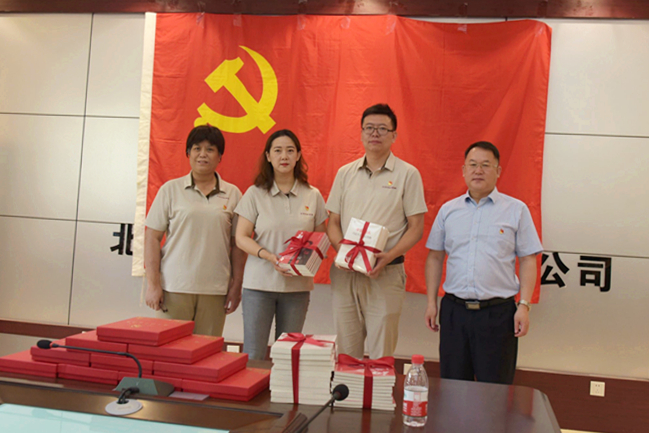 王建刚、李秀梅向共建支部党员赠送了《向共产党员张富清学习》和《平语近人》,并勉励支部党员在主题教育活动中继续加强学习。