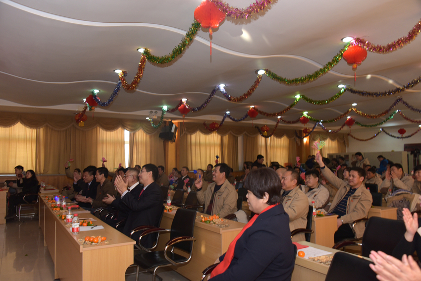 演出前,公司总经理杨寒冰代表公司领导班子作了热情洋溢的新春致辞,他说:岁月不居,天道酬勤。过去的一年里,我们共同拼搏,尽管道路坎坷,尽管困难重重,但却成绩辉煌!新的一年又至,更需职工努力,携手再创奇迹!之后,公司领导班子给全体职工送去了新年的祝福。