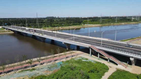 近日,中国建筑金属结构协会发布第十五届第一批“中国钢结构金奖”获奖名单,由国道通设计院设计的通州区武窑桥改建工程荣获中国钢结构金奖。新建武窑桥位于武兴路辅线,是一座跨越北运河的大跨度连续钢构桥,全长605米,路面宽23.5米,双向4车道,是北京市首座主跨达70米、连续跨径达180米的跨河双曲线钢箱桥梁,对助力京津冀水上交通一体化、构建大运河历史文化带具有十分重要的作用。在该工程设计过程中,项目团队高度重视、精心计算、审慎出图,在满足桥梁质量安全各项标准要求的前提下,创新应用多项独具特色的设计元素。在“π”型桥墩设计施工中,充分利用BIM技术搭建协作平台,实现了模型与信息数据在设计室与施工现场之间的无缝传递。在桥梁加宽段巧妙设置了弧形渐变观景平台,让桥梁通体曲直交替、刚柔并济,整体造型如轻舟泛过、水波清漾、泛起层层涟漪,实现了工程实用性与观赏性的和谐统一。
