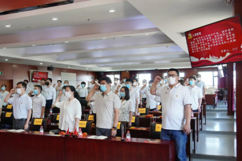 随后,全体与会党员面向鲜红的党旗,宣读入党誓词,重温共产党人的初心使命。