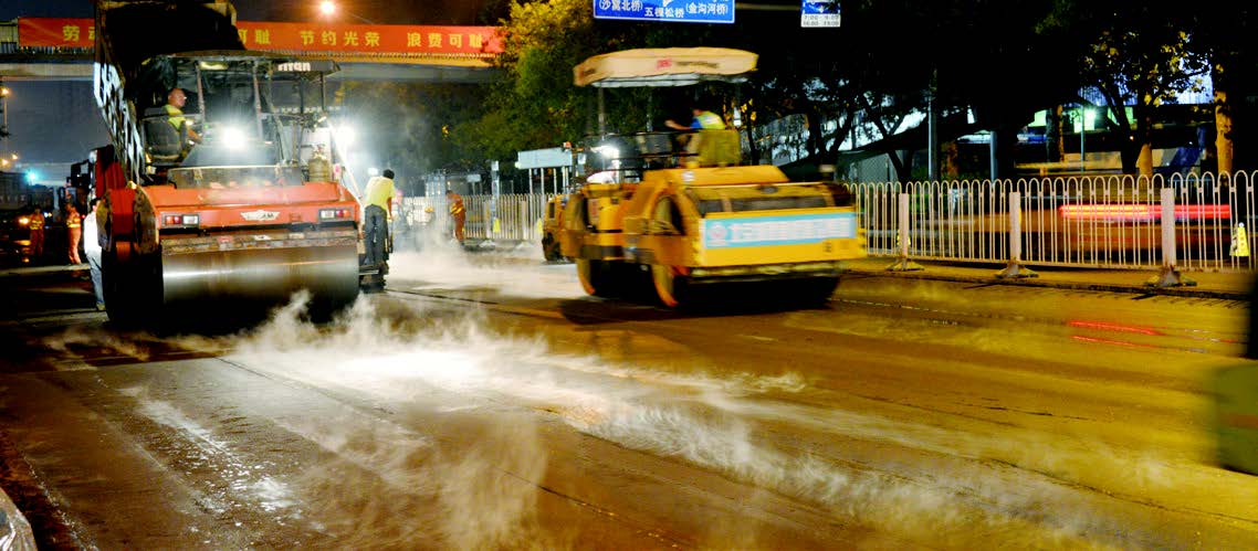 阻燃抑烟沥青路面技术是将阻燃改性剂添加到混合料中,在热解形成的气态产物中含有PO·或受热时放出结合水,可以有效地抑制H·及HO·的链传递或吸收大量的热,提高材料本身燃烧所需要的氧浓度,同时抑制燃烧时烟气的形成,从而达到阻燃和抑烟的效果。阻燃抑烟沥青路面适用于长大隧道及地下管廊工程建设施工中,采用阻燃抑烟路面技术可提高材料极限氧指数,降低烟气排放,消除沥青路面火灾隐患。同时在施工过程中降低烟气排放量,保护施工作业人员身心健康。
