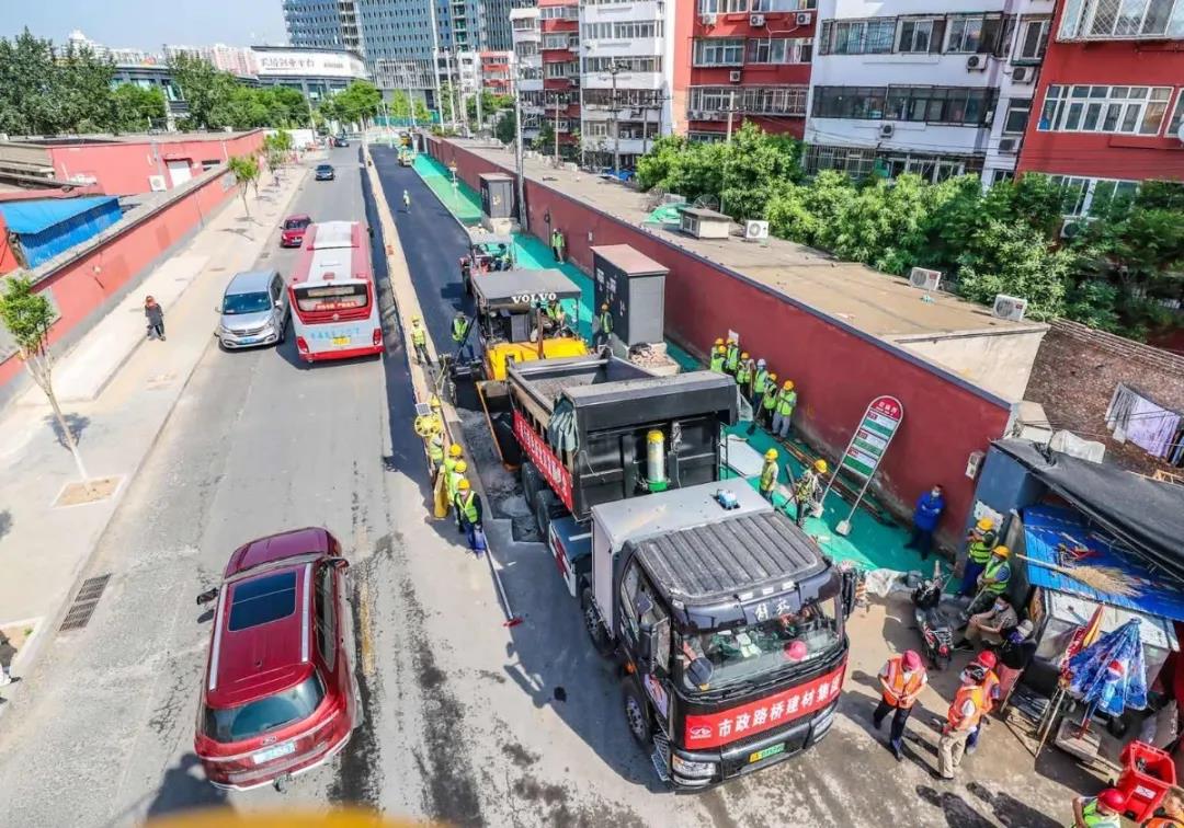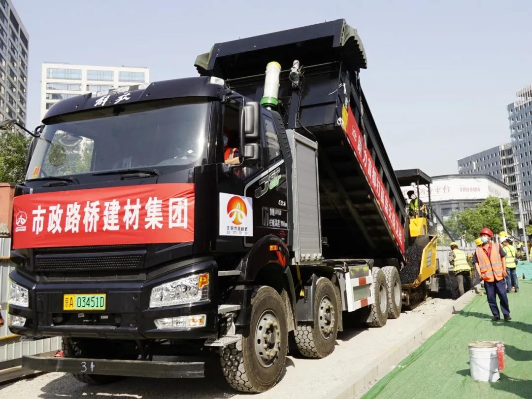 在北京丰台区道路施工现场,五辆新型纯电动沥青料运输车匀速安静的伴随着摊铺机缓缓前行,随着料斗里乌黑油亮的沥青混合料不断碾压成型,公司引进的这批新能源纯电动重卡完成了它们的首秀。