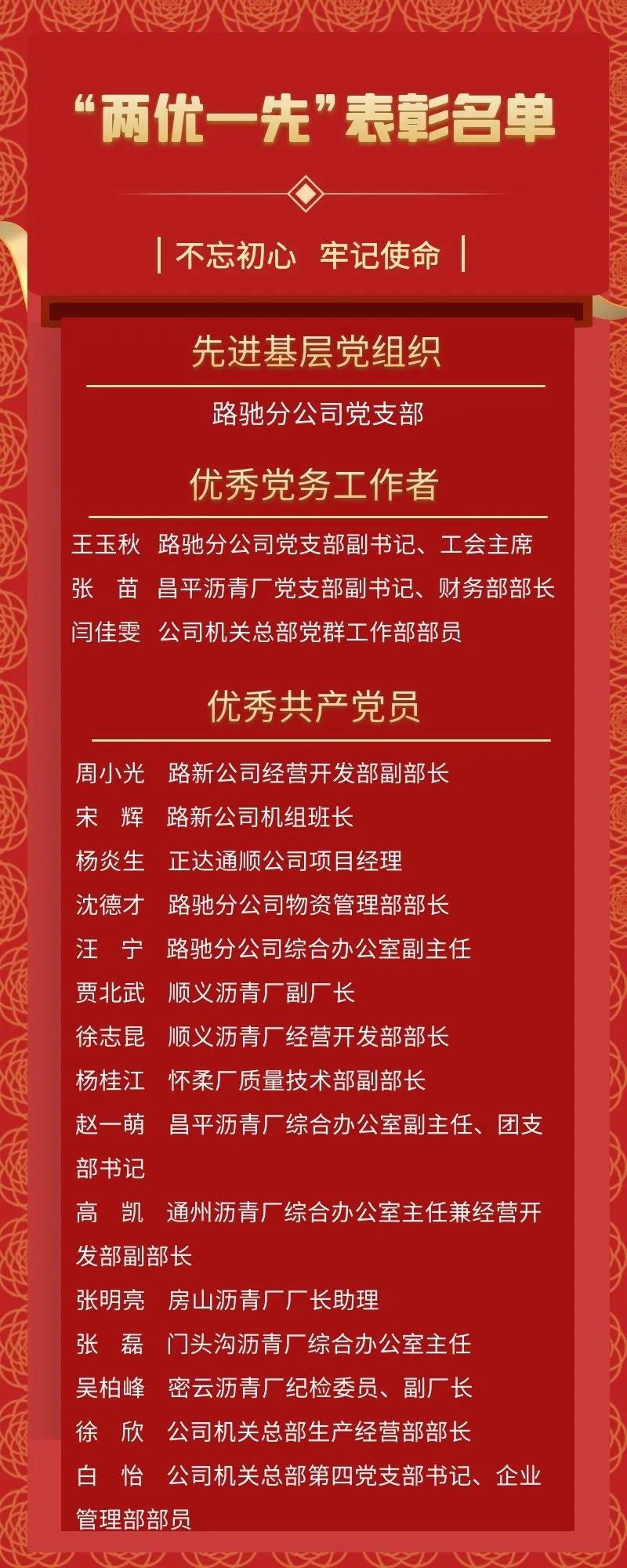 为弘扬“十九大精神”,传递榜样力量,公司党委经评选,决定授予周小光等15名共产党员“优秀共产党员”荣誉称号、王玉秋等3名党务工作者“优秀党务工作者”荣誉称号、路驰分公司党支部“先进基层党组织”荣誉称号。