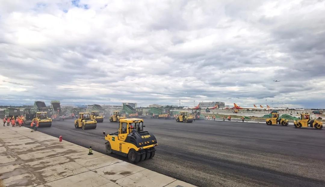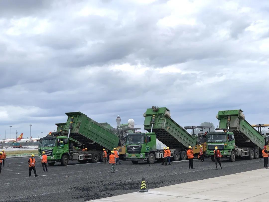 9月11日,大修中的首都机场西跑道进入沥青面层铺设阶段,数台摊铺机依次排开、缓缓前行,随着首批次2000余吨特种沥青混合料逐渐碾压成型,一条崭新的机场跑道初见雏形。首都机场西跑道本次铺设所用路面材料是一种进行了配方双重改良的特种改性沥青混合料,性能得到大幅提升,在北京尚属首次应用,后期将由路新公司为西跑道大修工程生产供应近5万吨该型产品,摊铺范围达6万平方米。