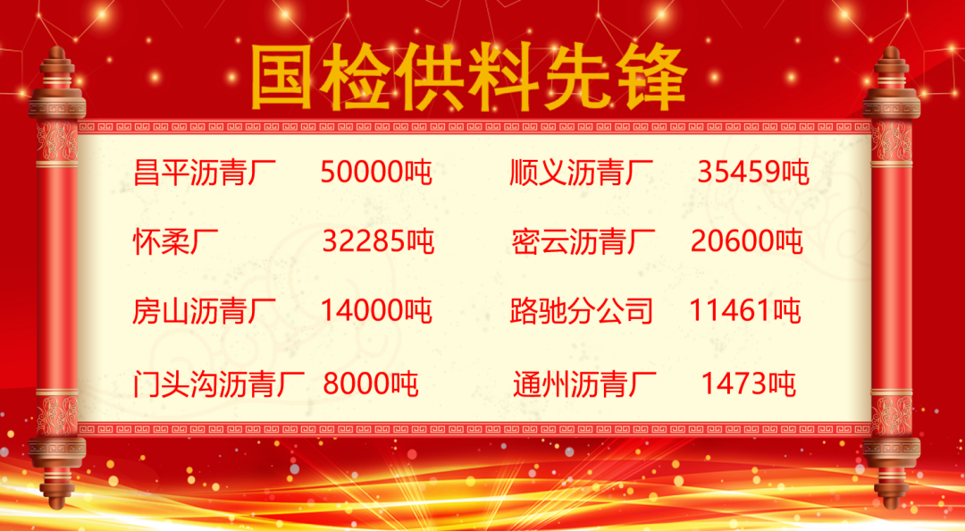 三季度以来,公司所属多家厂站密切配合、协同作战,为“国检”系列工程供应沥青混合料共计17.3万余吨,范围涵盖京港澳、京藏等高速公路,109、111等多条国道和北京各区域干线公路。