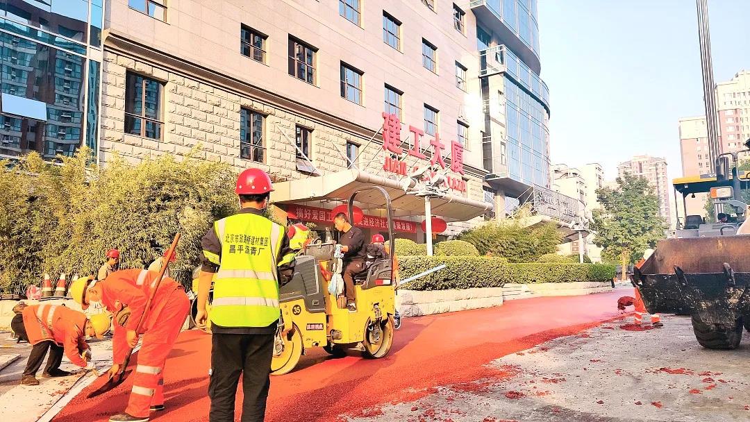 两节期间,公司所属路驰分公司、昌平沥青厂合力圆满完成建工大厦院区供料,累计供应包括红色沥青混合料在内的路面材料590吨,铺筑面积约3600平米,在中秋遇上国庆的特殊日子里,使建工大厦院区“增红添彩”,整备一新。
