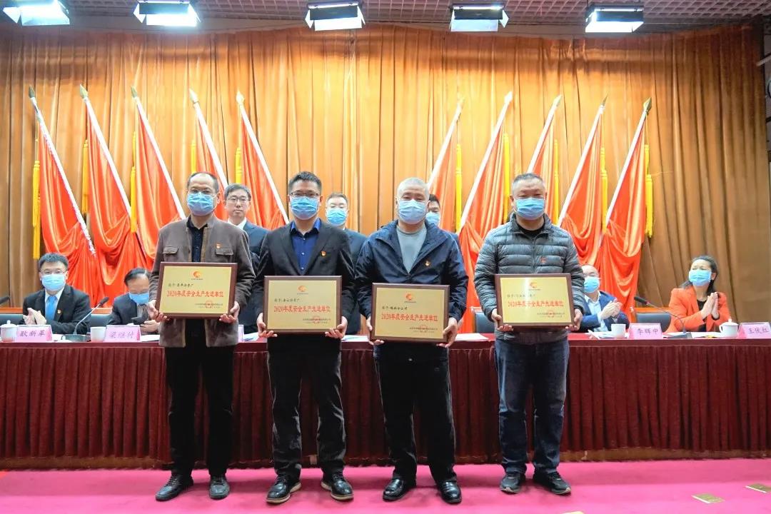 公司主要领导与代表单位签订了2021年度经营业绩考核责任书及2021年度安全维稳责任书,并对安全生产、企业发展、劳动竞赛、职称晋级与新取得等方面涌现出的先进集体和个人进行了表彰。