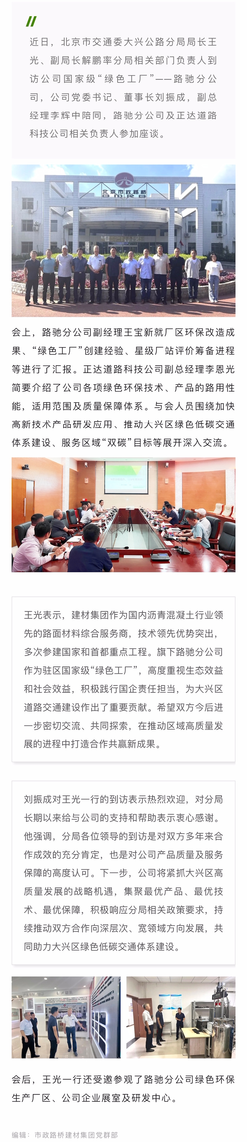 市交通委大兴公路分局局长王光一行到访公司国家级“绿色工厂”