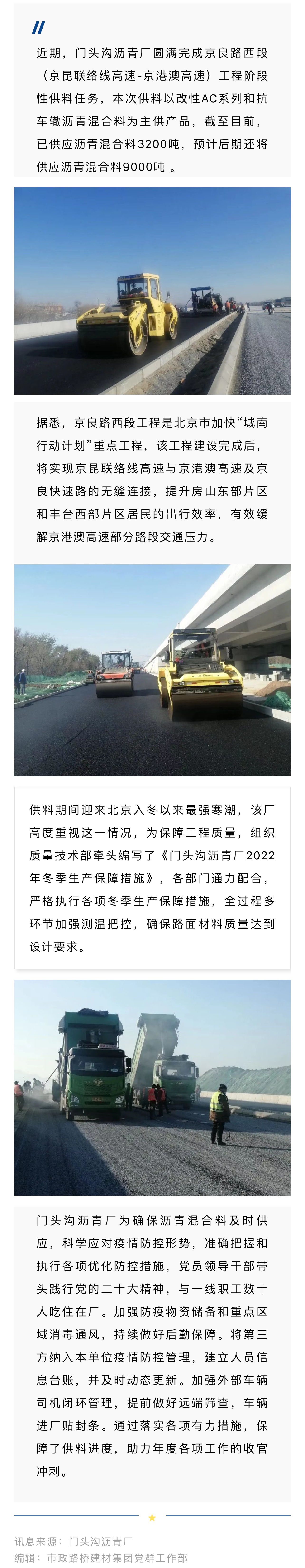 【践行二十大】质量防疫“双确保”门头沟厂完成京良路阶段供料任务