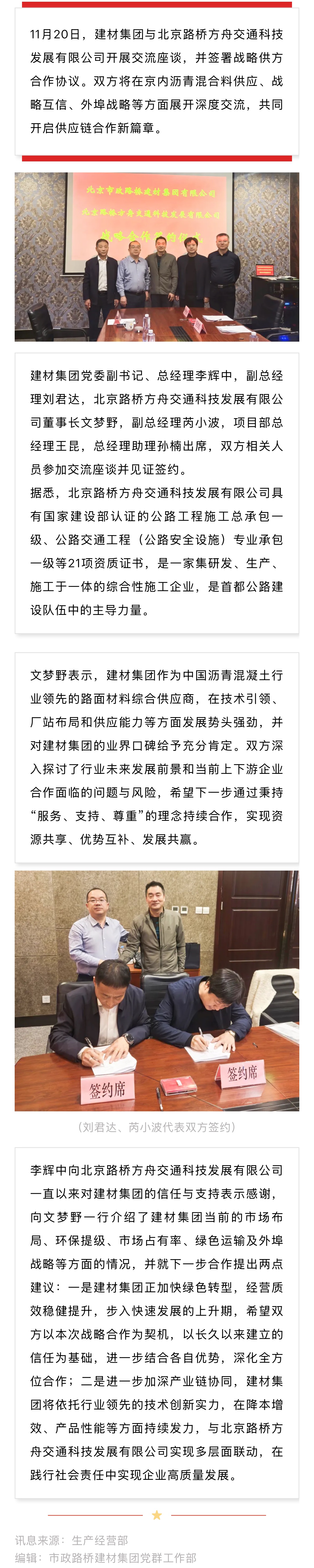 建材集团与北京路桥方舟交通科技发展有限公司举行战略合作签约仪式