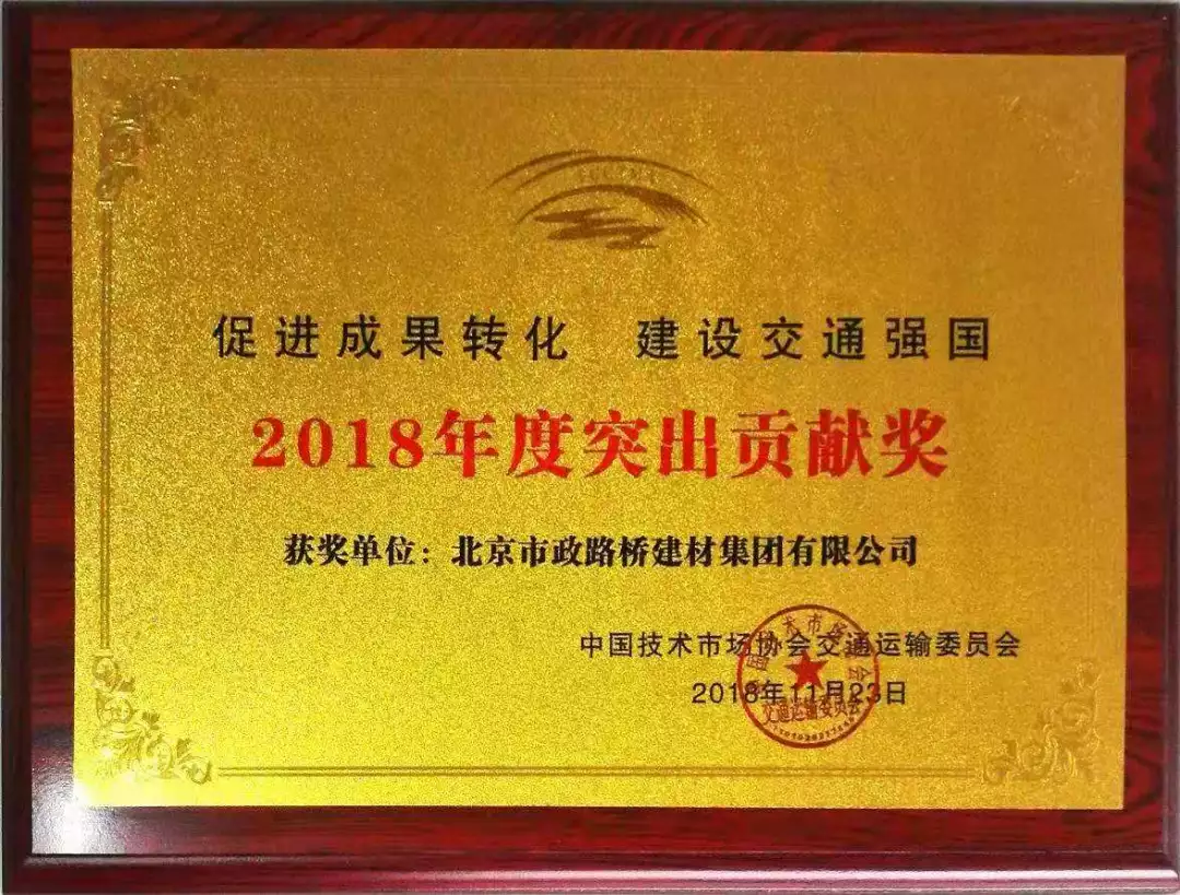 此次会议主题是“加快成果转化,创建品质工程”,由中国技术市场协会交通运输委员会主办。会上,有关专家介绍了质量强国、技术创新、成果转化等方面的设想和举措,解读了交通运输部品质工程相关政策以及“四新”技术在品质工程中的应用等内容,并组织了品质工程项目现场观摩。因我公司在技术成果转化方面工作成果显著,中国技术市场协会交通运输委员会向公司颁发了“2018年度突出贡献奖”。