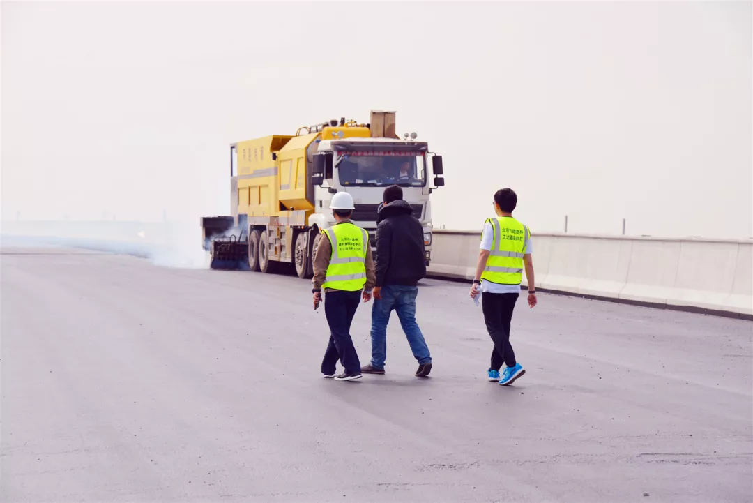 在本次撒布中,该公司采用了新型特种沥青粘结层成套技术,其中包含PC-2透层沥青、PCR粘层沥青、桥面防水橡胶沥青等子产品,可应用在道路的不同层面上。其中PC-2透层沥青用在二灰碎石基层上,能增加沥青油的渗透性,达到“固本强元”的效果。PCR粘层沥青则可作用在混合料层间,起粘结作用,使各层路面浑然一体。桥面防水橡胶沥青是借助同步碎石纤维封层技术,能与纤维和碎石同时撒布,快速形成坚固强效的防水层,具有施工时间短、粘结强度高、防水效果好等特点。