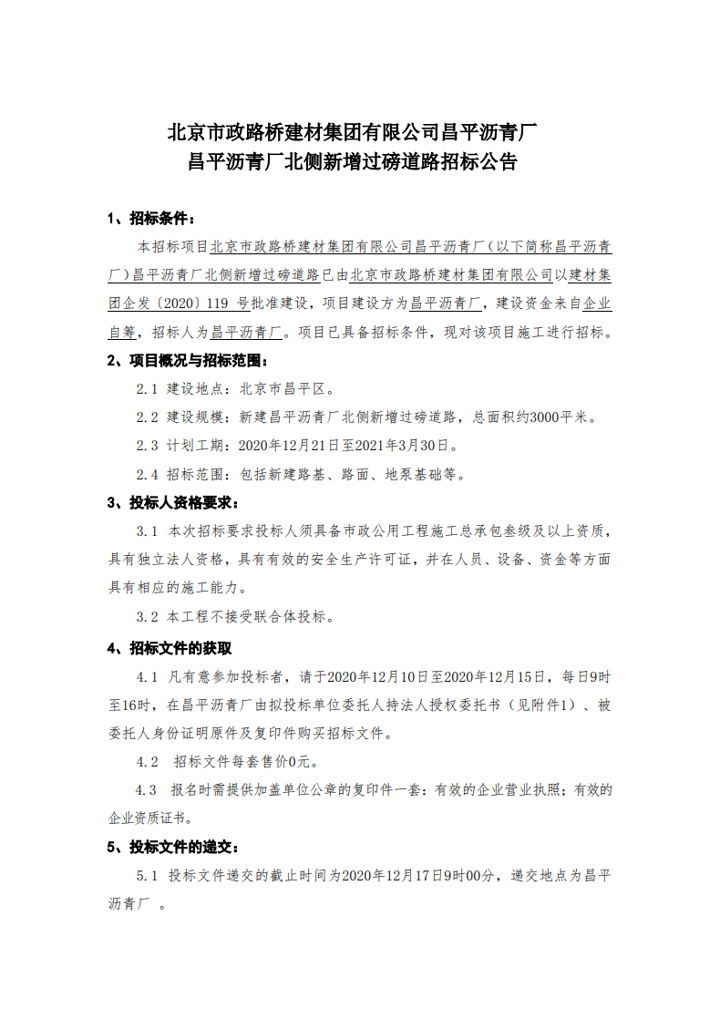 昌平沥青厂北侧新增过磅道路招标公告