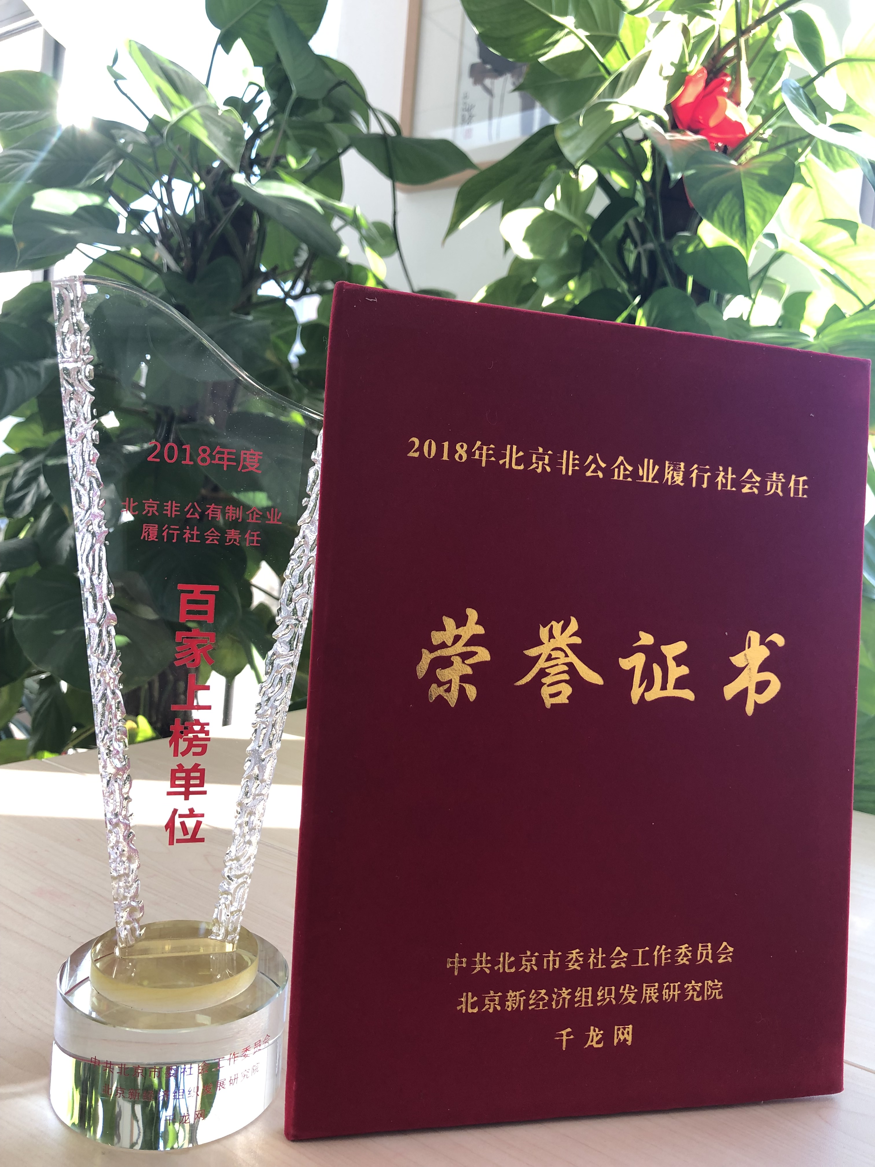 2018年12月27日下午,由中共北京市委社会工作委员会、首都经济贸易大学、北京新经济组织发展研究院和千龙网组织的2018年度北京市非公有制企业履行社会责任综合评价活动百家上榜单位发布会暨颁奖活动在首都经济贸易大学博学楼会议室举行,我公司荣获“北京市非公有制企业履行社会责任综合评价活动百家上榜单位”。
