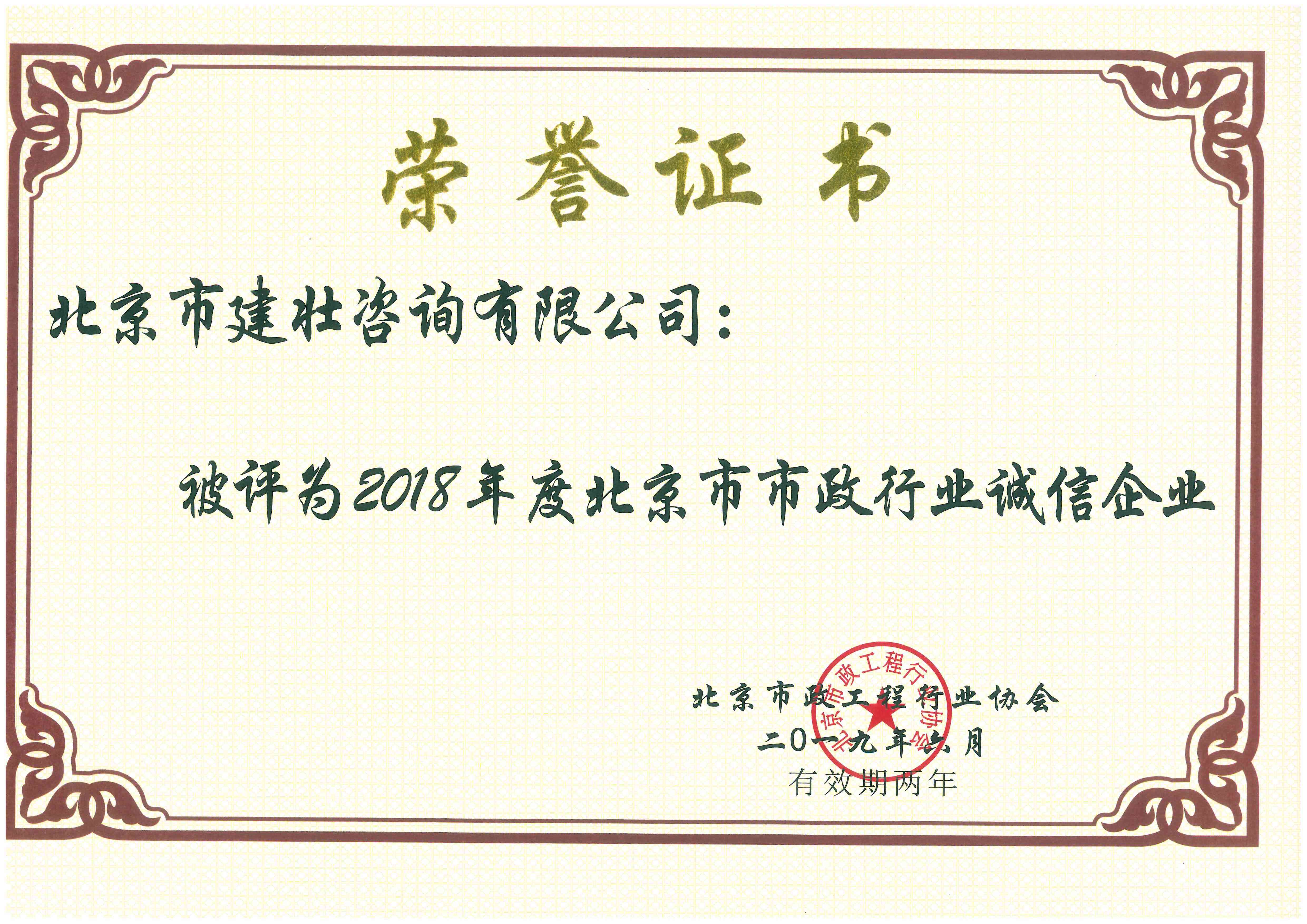 2019年6月6日,北京市政行业工程协会举办了2019年北京悟空体育官网入口 行业协会会员大会,会上对2018年市政行业诚信企业获奖单位进行了颁奖仪式。我司荣获2018年市政行业诚信企业。