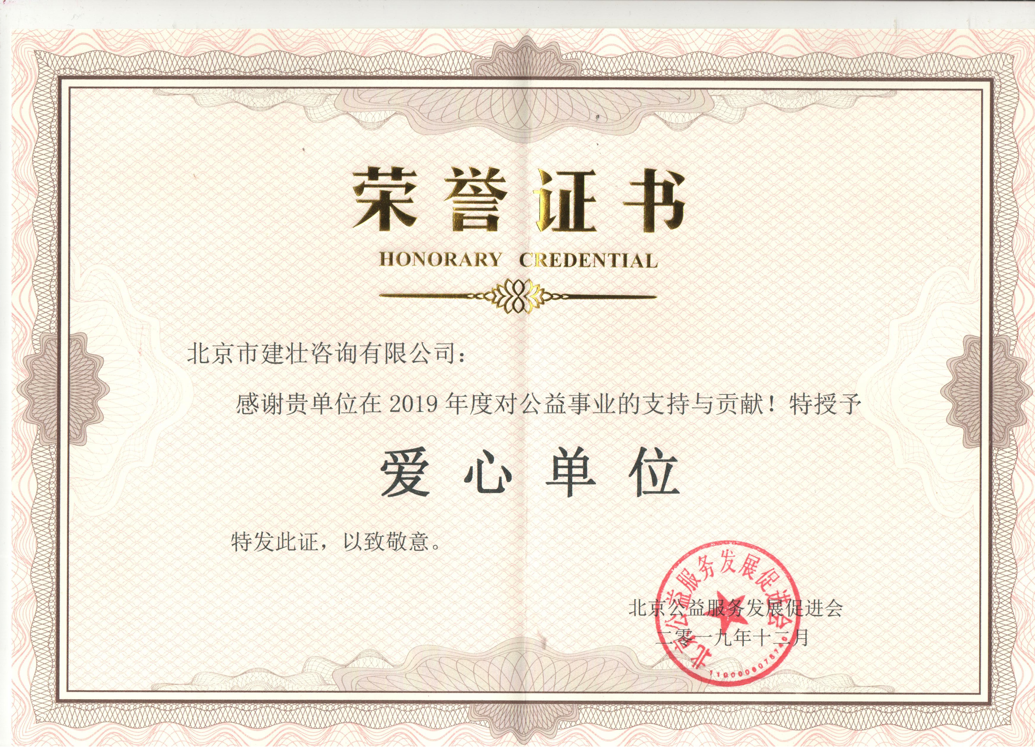 2019年12月18日,北京市建壮咨询有限公司在北京黄河京都大酒店参加了由京标价协举办的“心阳光1+1”授牌仪式,并荣获“爱心单位”称号。