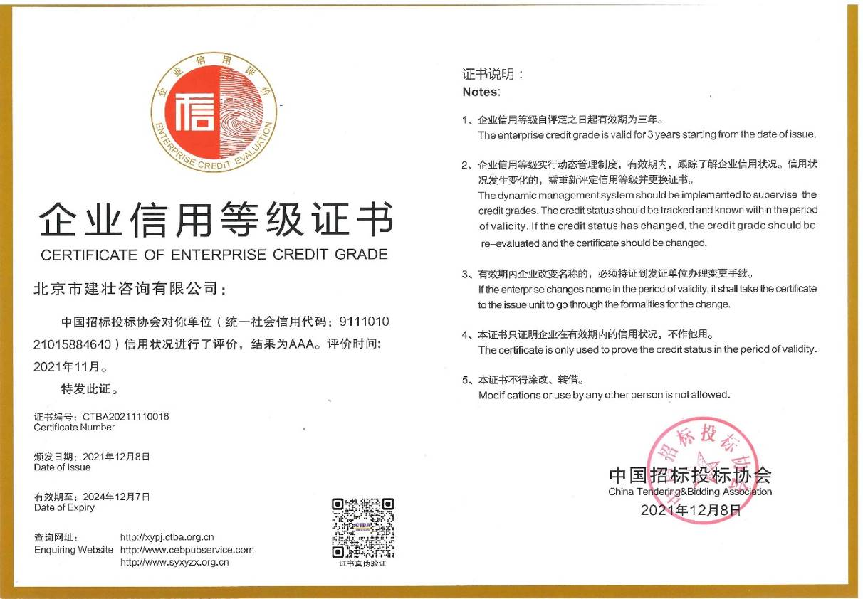 AAA级招标代理企业信用等级证书(中国招标投标协会)