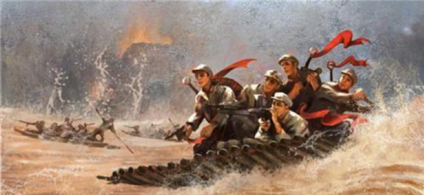 5月29日下午4点,夺取泸定桥的战斗正式打响。由22名突击队员组成的夺桥突击队,冒着敌人的枪林弹雨,奋力攀上湿滑的铁链,向对岸发起进攻。