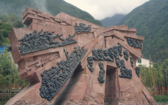 图|为纪念22名勇士而设立的红军飞夺泸定桥雕塑