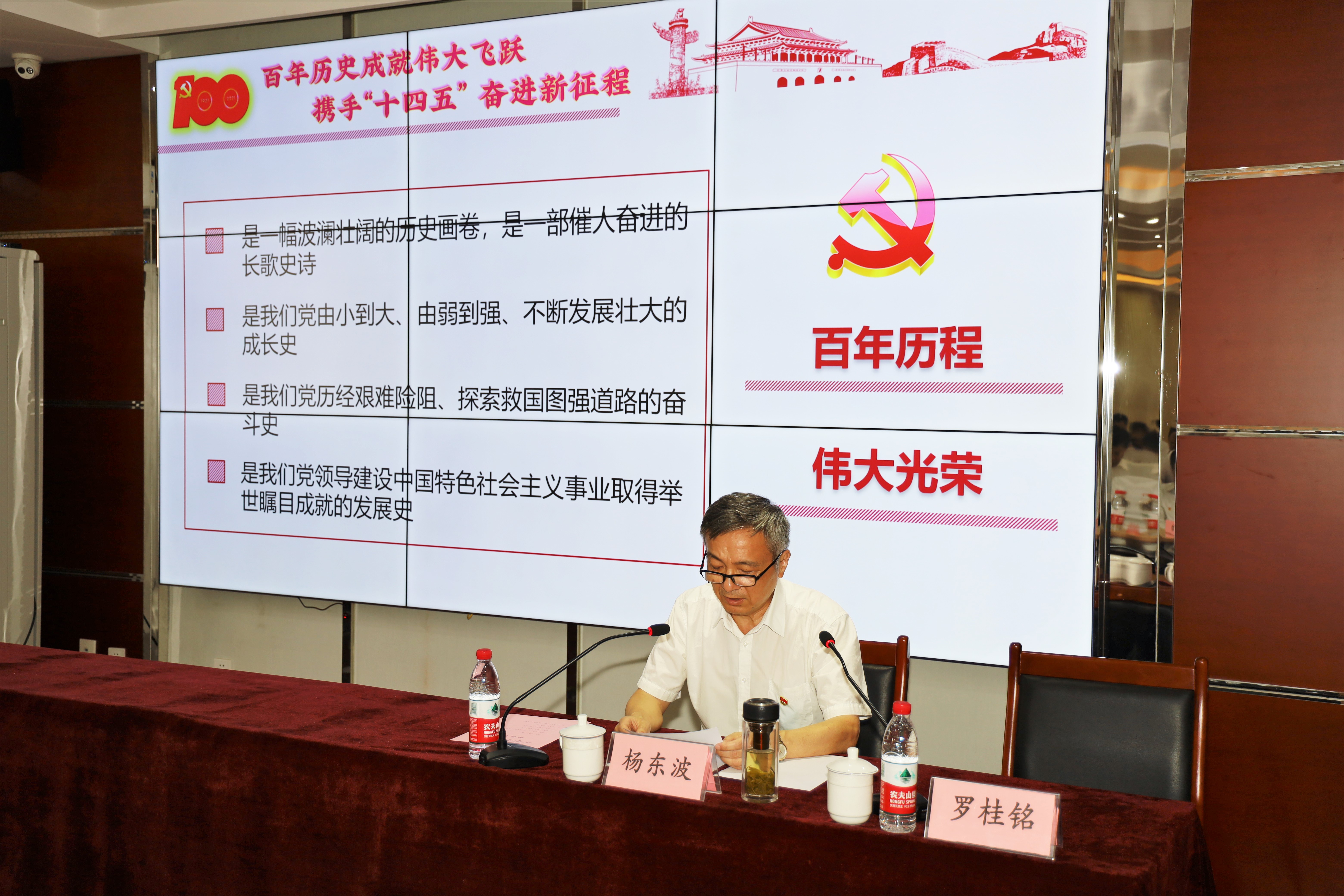 党课从中国共产党百年发展的四个阶段入手,为大家介绍了中国发展进程中的三次伟大飞跃。杨东波强调,要用历史映照现实、远观未来。面对“十四五”开局之年,要立足新发展阶段、贯彻新发展理念、融入新发展格局,守正创新,助推企业发展行稳致远。要以风雨同舟的信念、只争朝夕的劲头、舍我其谁的担当,携手“十四五”,奋进新征程。