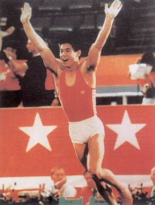 图|“体操王子”李宁在第23届奥运会自由体操比赛中获得满分
