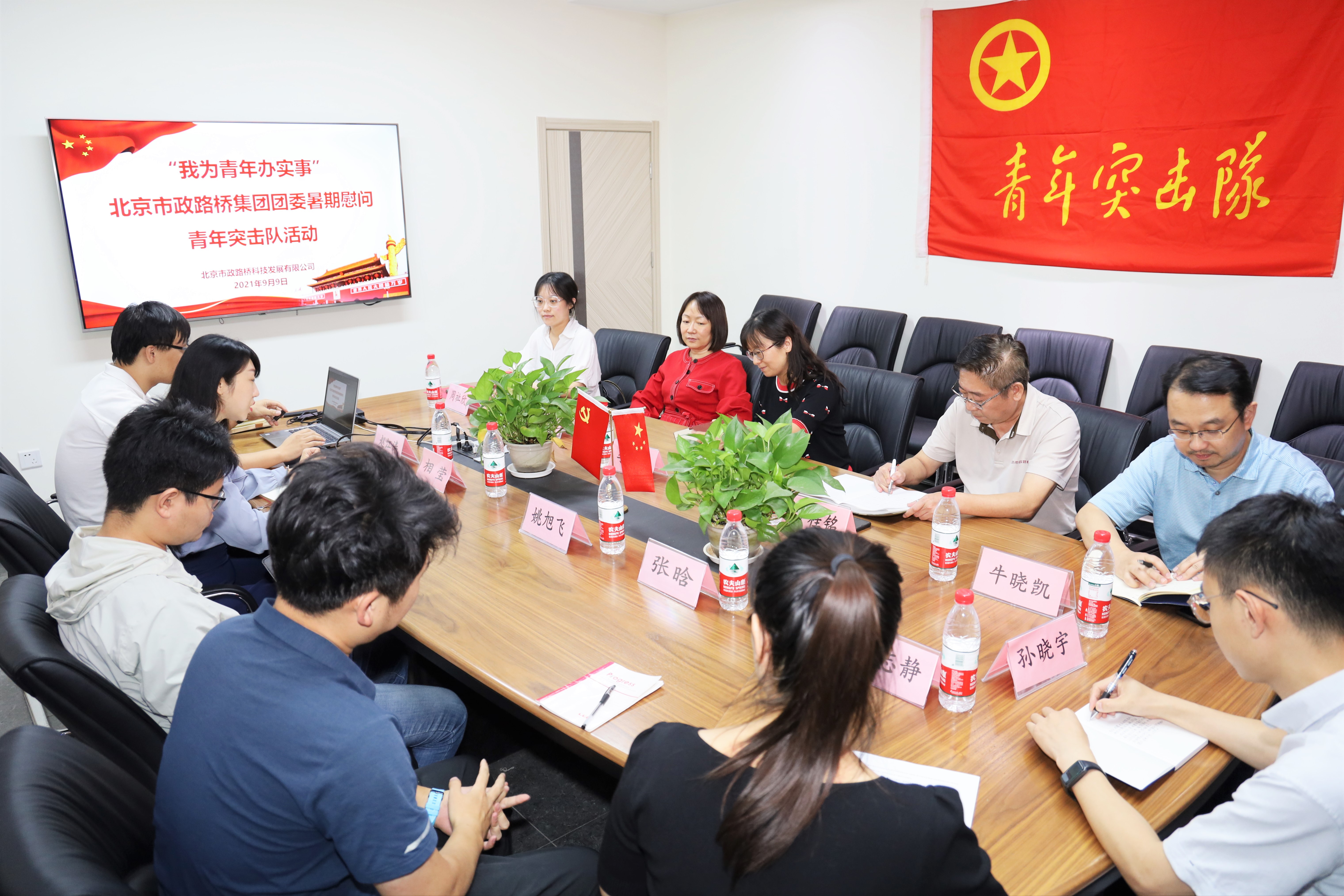 9月9日,集团公司党委组织部副部长、团委书记李倩一行到科技发展公司对奋战在一线的青年突击队开展调研慰问工作,党委副书记、工会负责人罗桂铭,党群工作部部长靳璞,纪检部副部长、团委书记相莹,隧道事业部总经理牛晓凯和“赵江涛青年突击队”全体成员参加会议。会议由纪检部副部长、团委书记相莹主持。