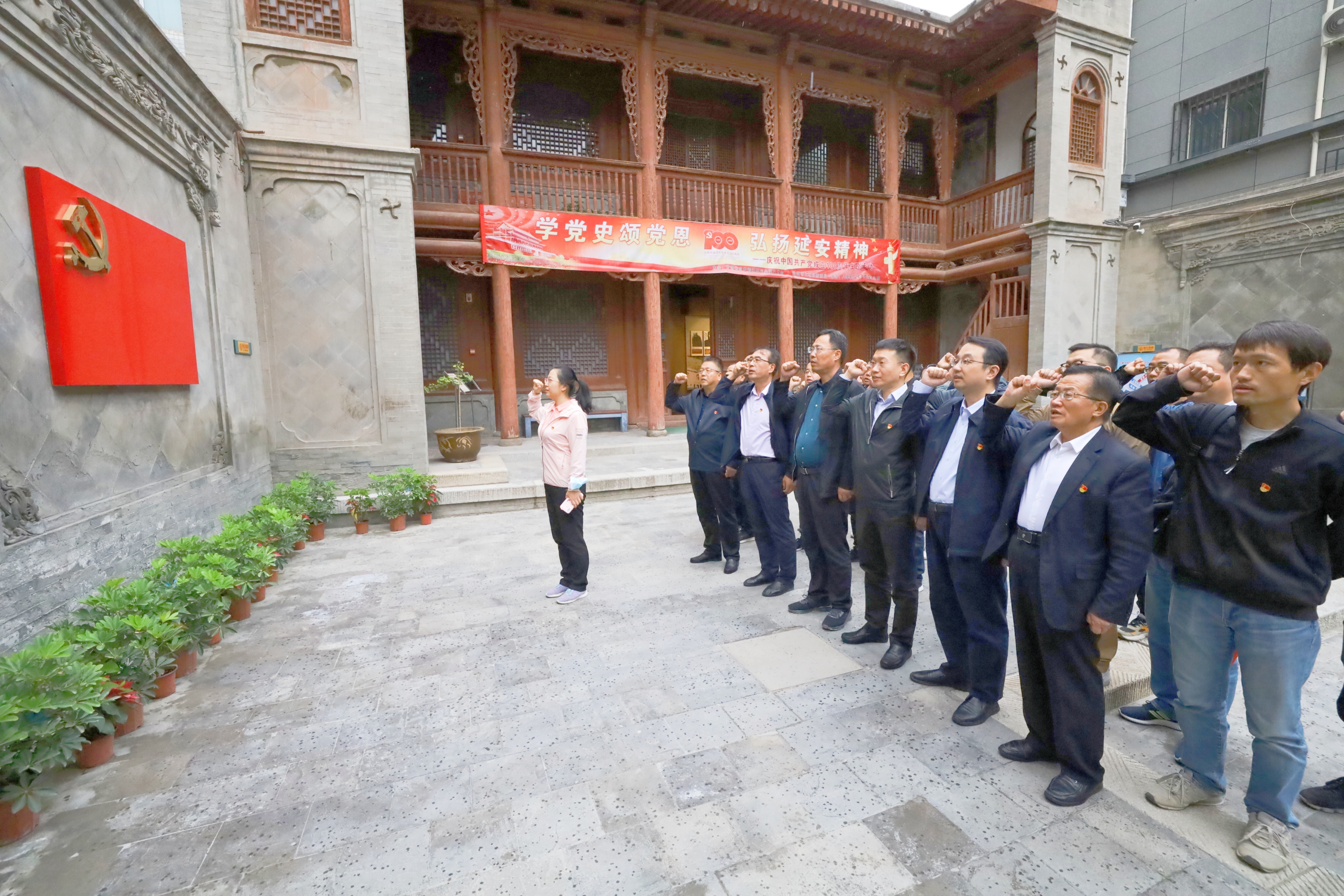在八路军驻兰州办事处纪念馆,全体党员面对党旗重温入党誓词。随后,在讲解员的带领下,大家进入展厅参观。