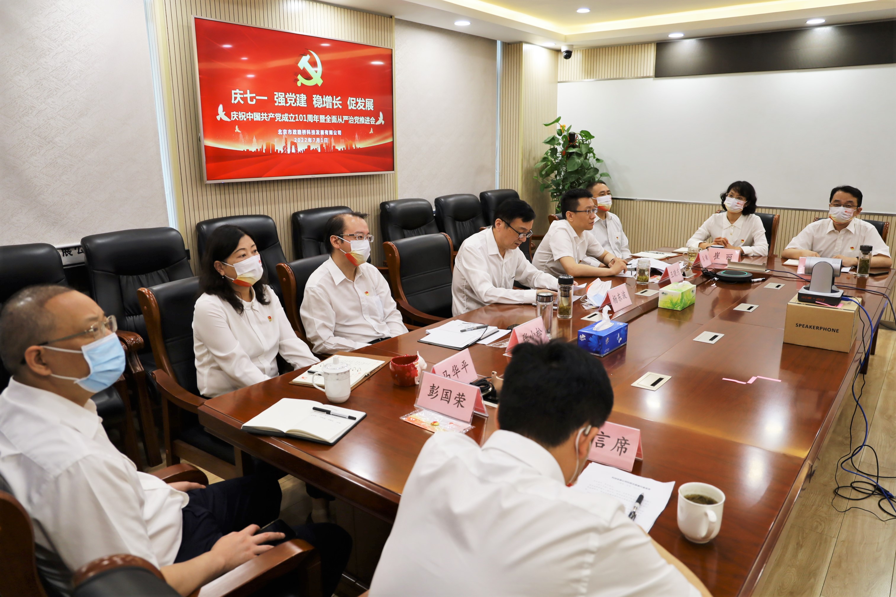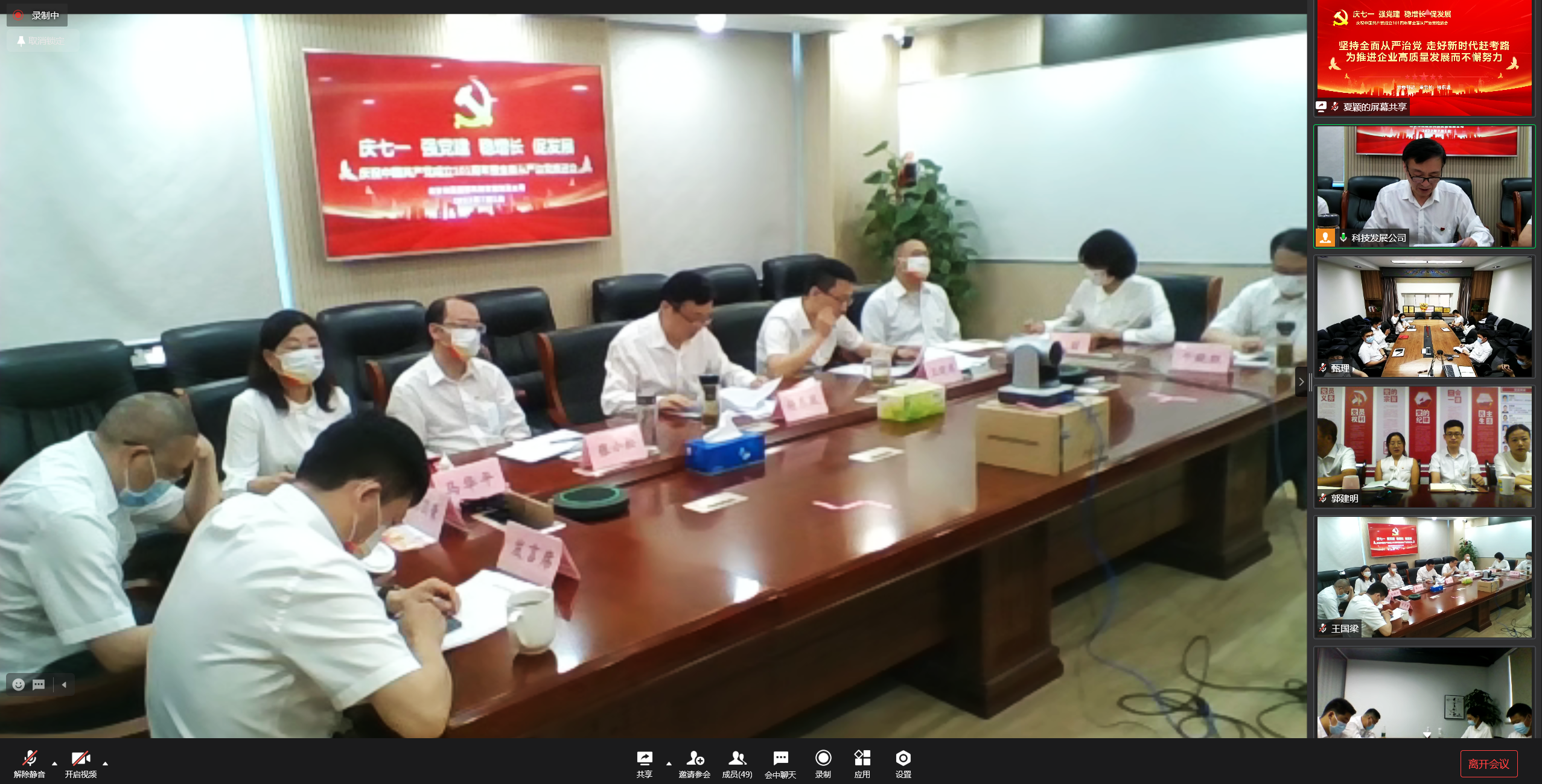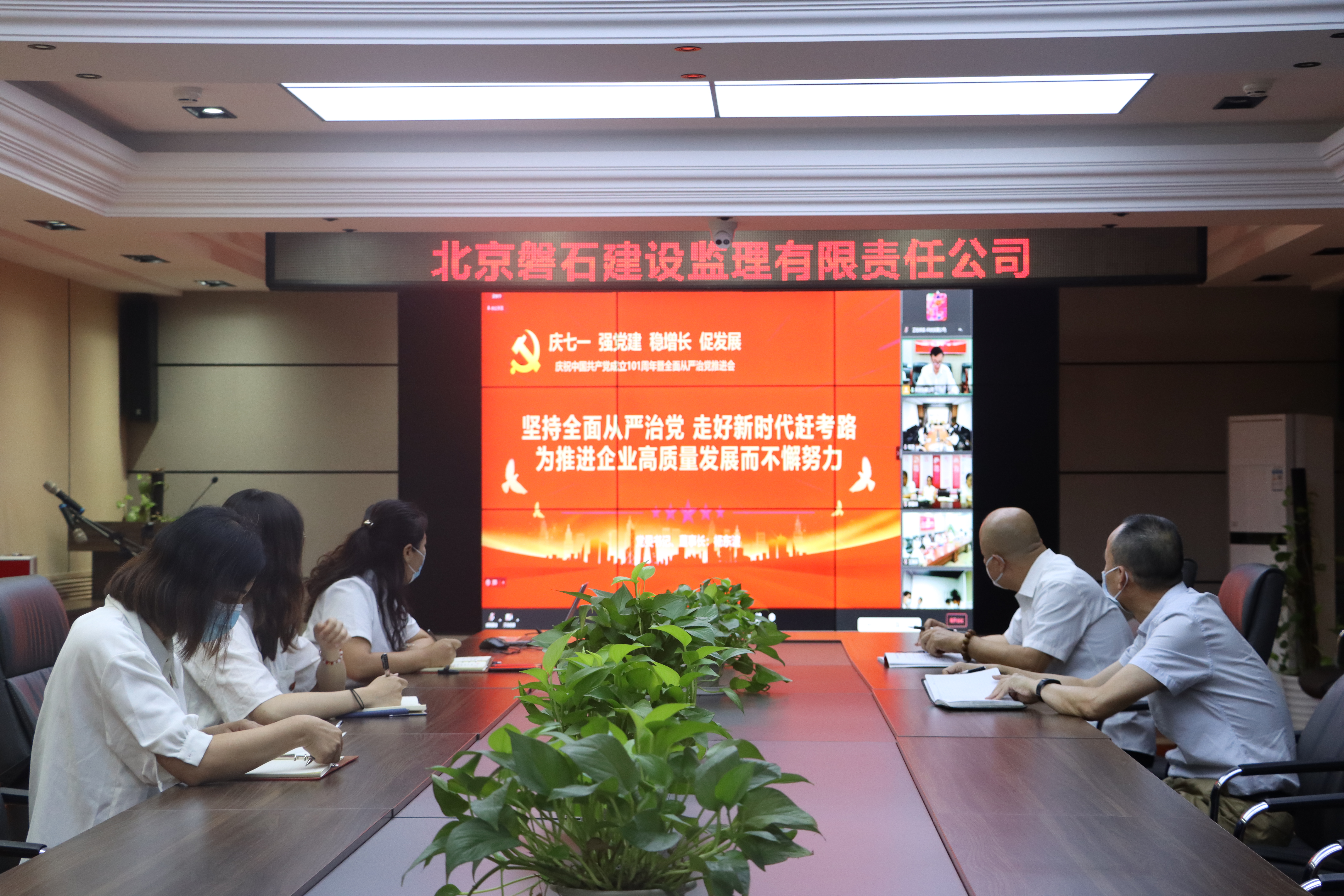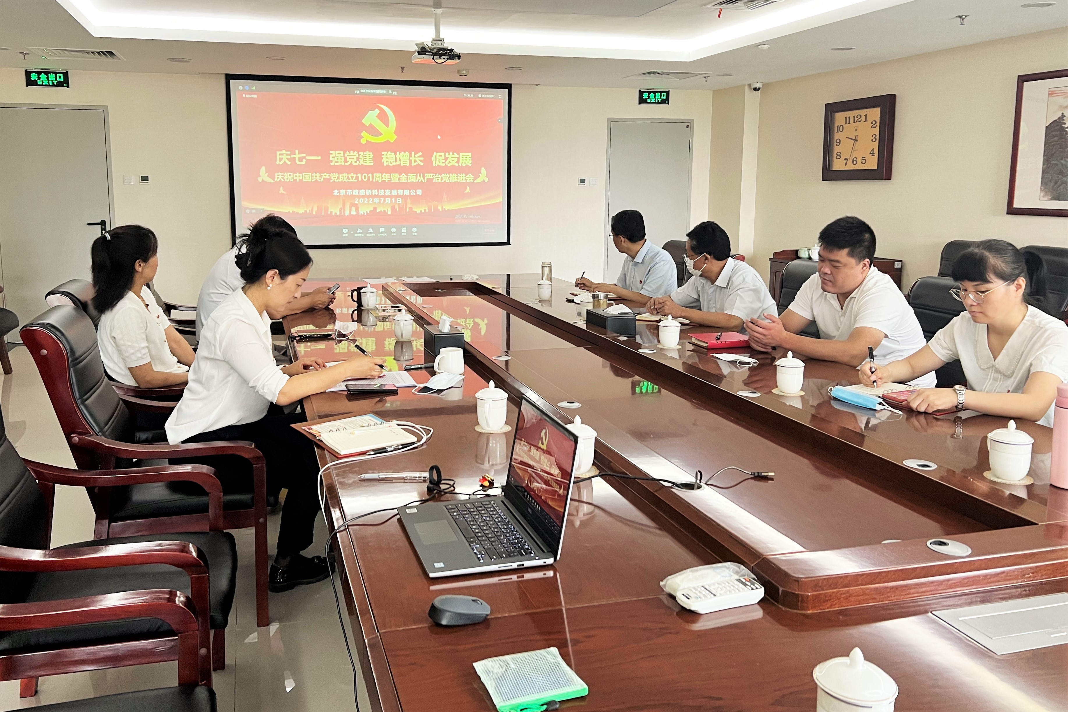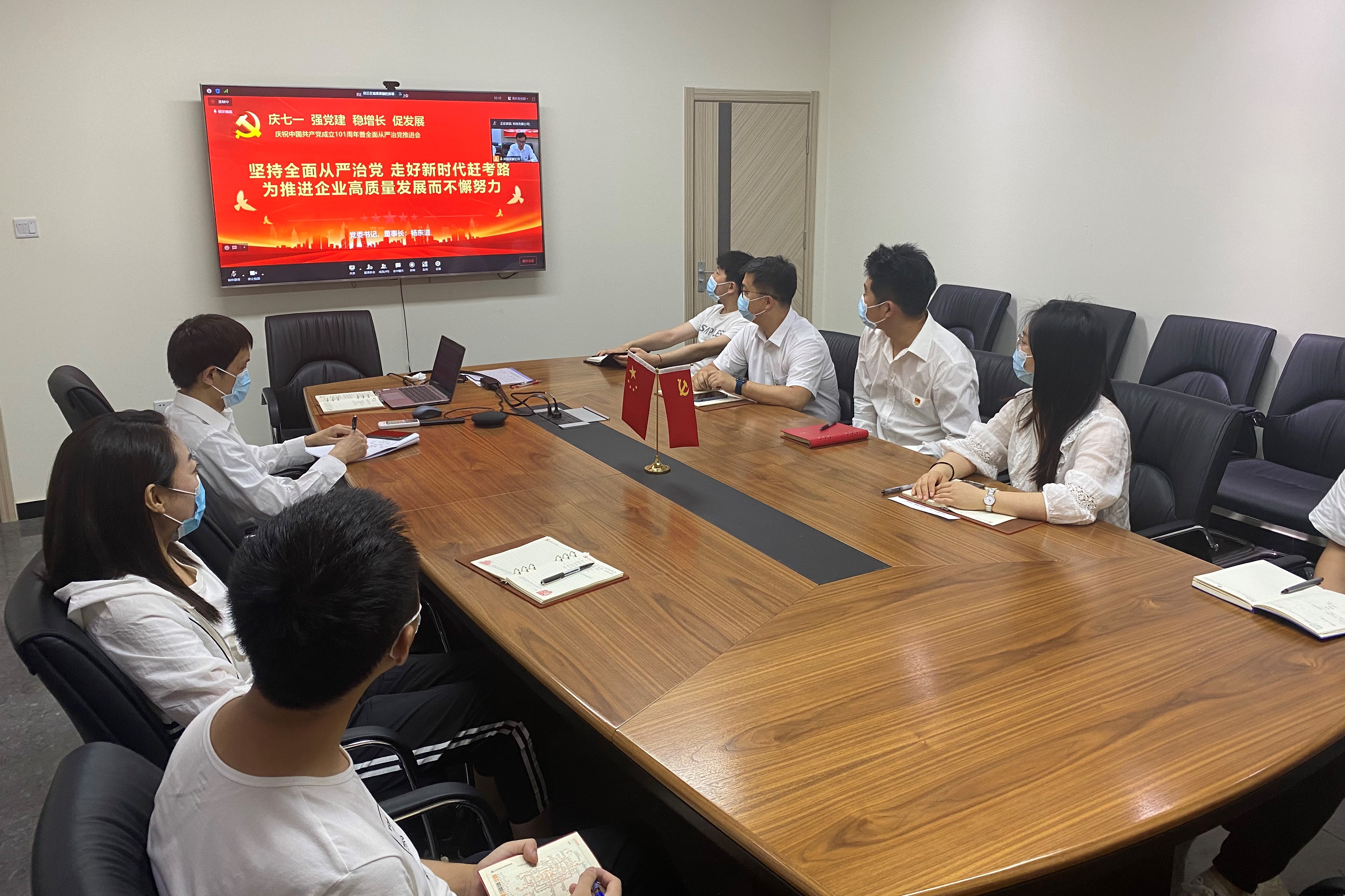 7月1日,为回顾历史,展望未来,表彰先进,激发干劲,科技发展公司召开庆祝中国共产党成立101周年暨全面从严治党推进会,大会采用现场+远程视频的方式召开。公司领导班子成员在主会场参会,总部各部室、所属各单位在分会场参会。会议由公司党委副书记、总经理王晓东主持。