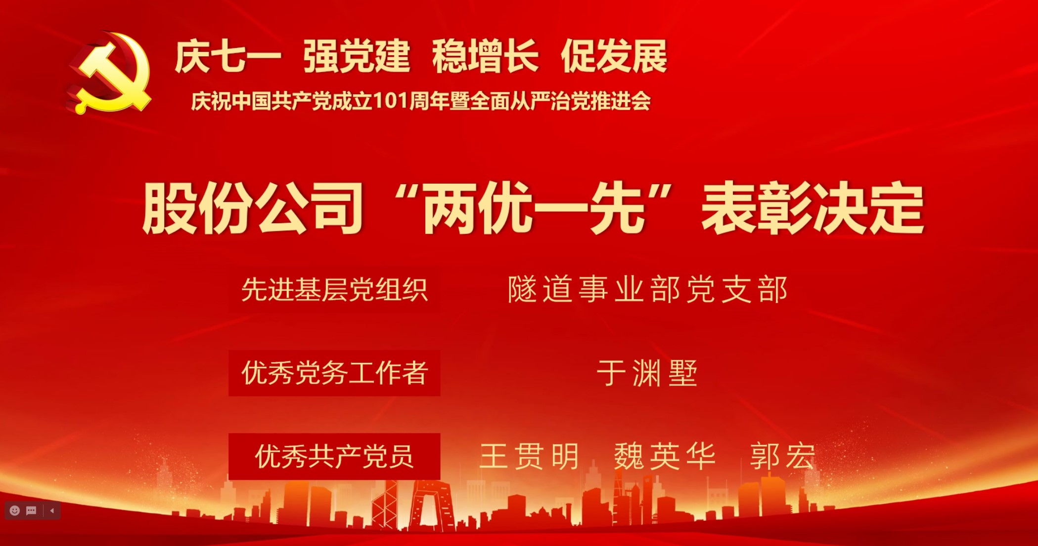 公司纪委书记张小松宣读了股份公司党委《关于表彰优秀共产党员、优秀党务工作者和先进基层党组织的决定》。
