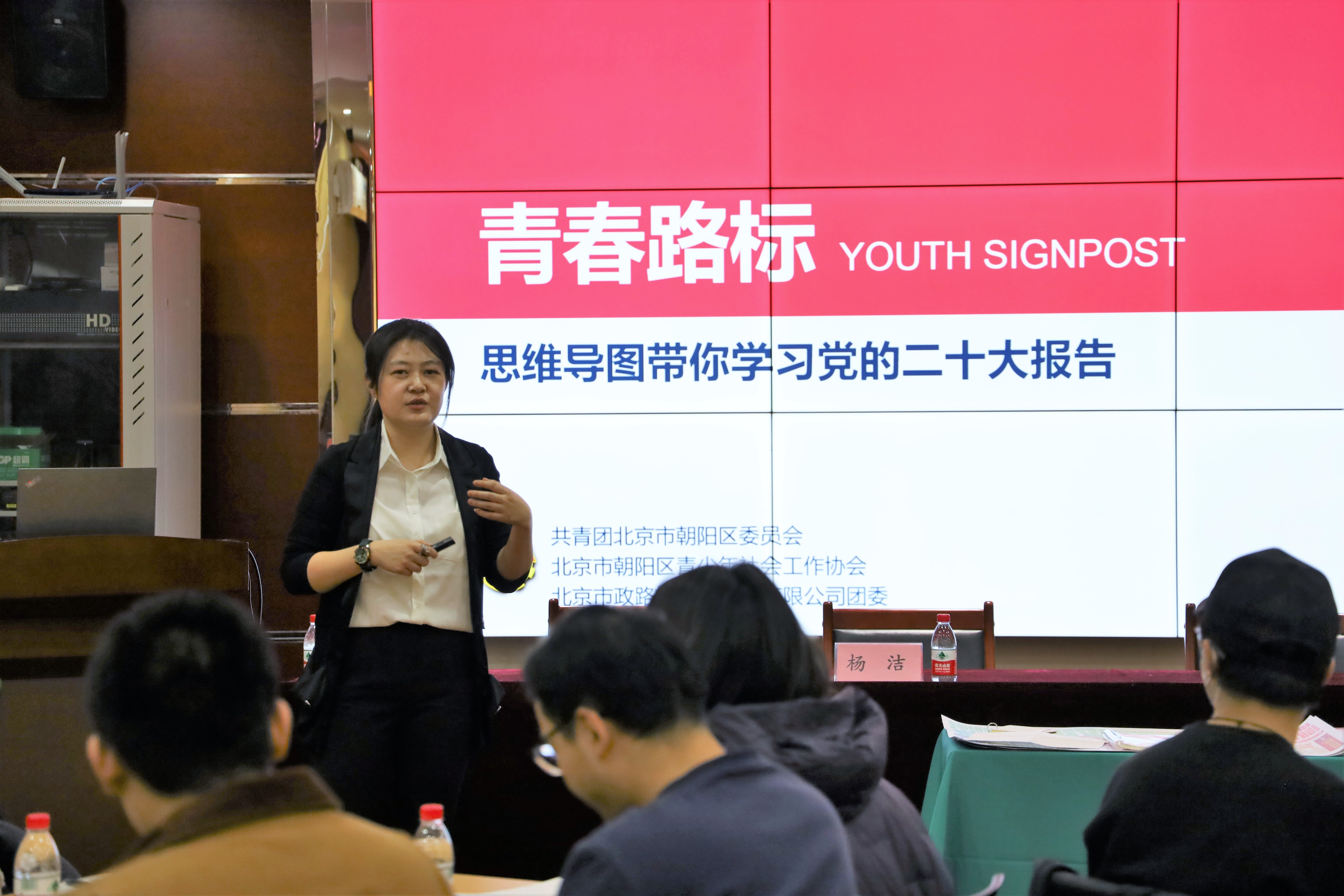 为深入学习领会党的二十大报告精神,进一步提升青年精神素养,2月24日,科技发展公司团委开展“青春路标——思维导图带你学习党的二十大报告”主题团日活动。活动特邀朝阳区青春讲师团讲师、“北京青年榜样”杨洁及青年汇团队进行授课。公司团委书记、纪检部副部长相莹,团干部、团员青年共计20余人参加活动。