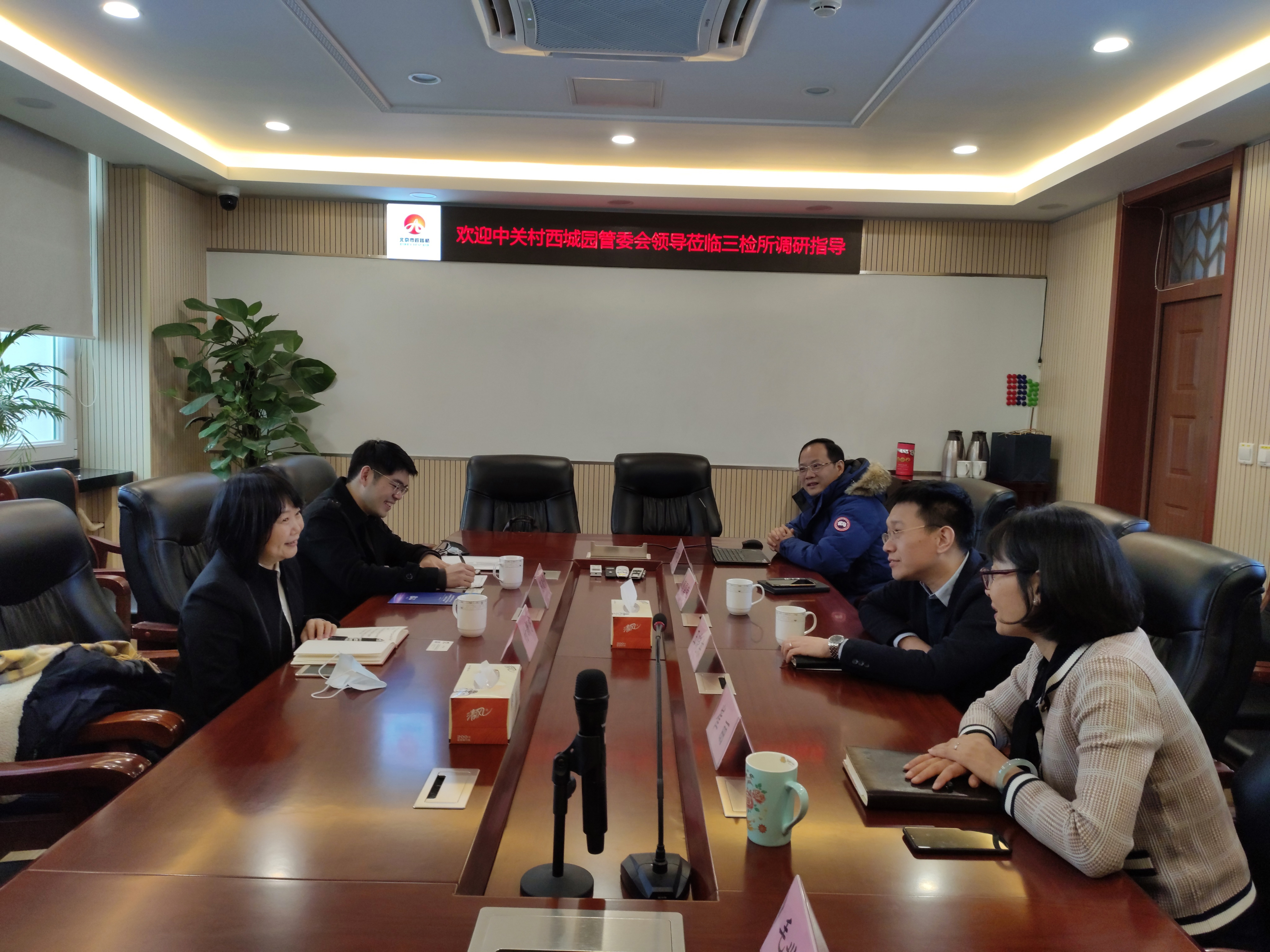 近日,中关村西城园管委会工会主席付新宇,创新处陈晓伟一行到科技发展公司调研。科技发展公司党委副书记、总经理王晓东,总工程师崔丽,三检所党总支书记、总经理彭国荣等相关人员参加了会议。