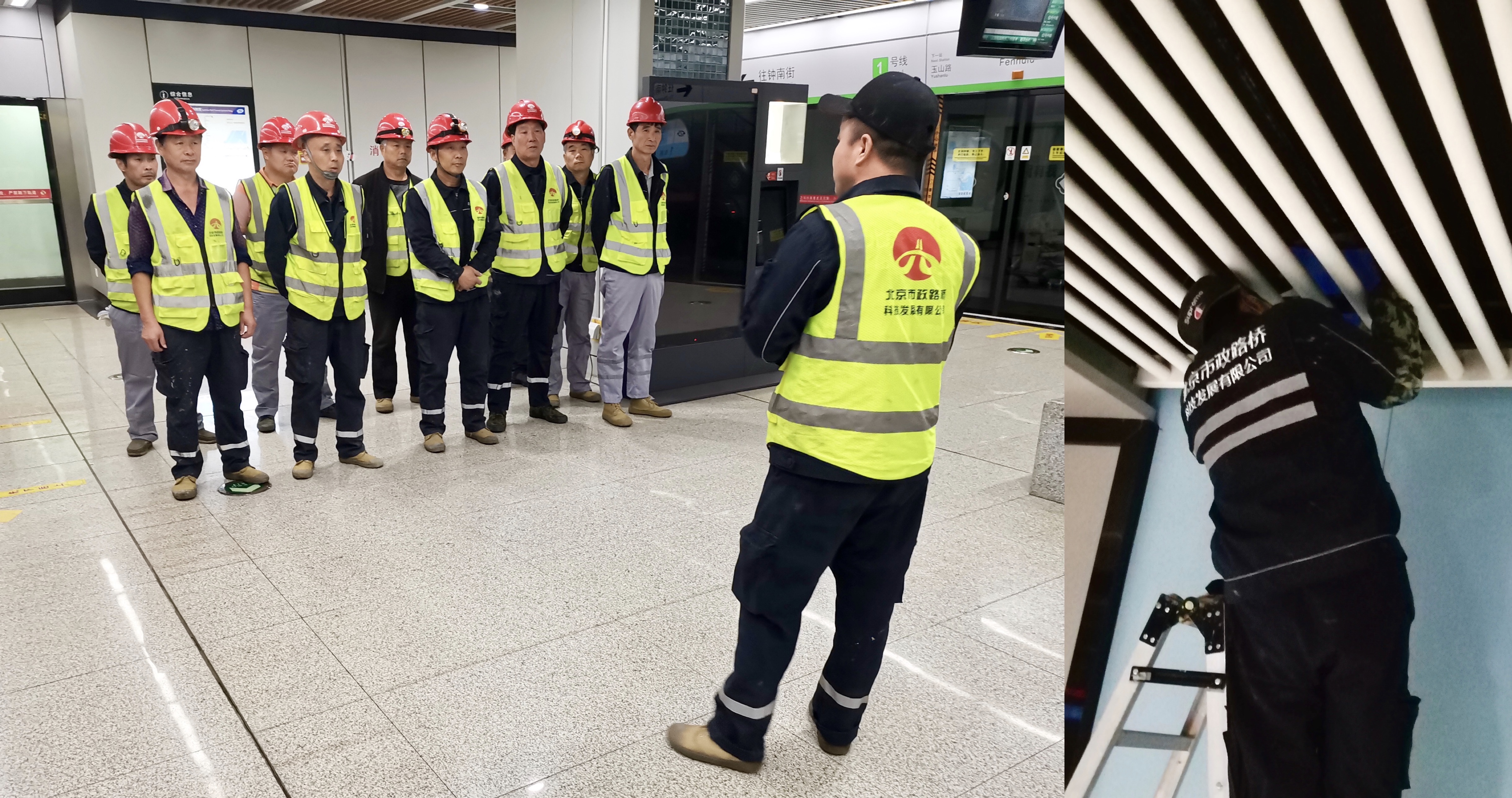 隧道区间人防门作为房建结构的重点设备,长期处在潮湿及活塞风的环境下,极易造成移位侵限现象,危害地铁运营安全。科技发展公司隧道工程事业部凭借丰富的加固治理经验,对1、2号线车站约35300平方米的出入口吊顶进行二次加固,消除连接部位失效导致脱落的隐患;对约7300平方米的吊顶面板卡箍进行全部更换,消除吊顶错落隐患。