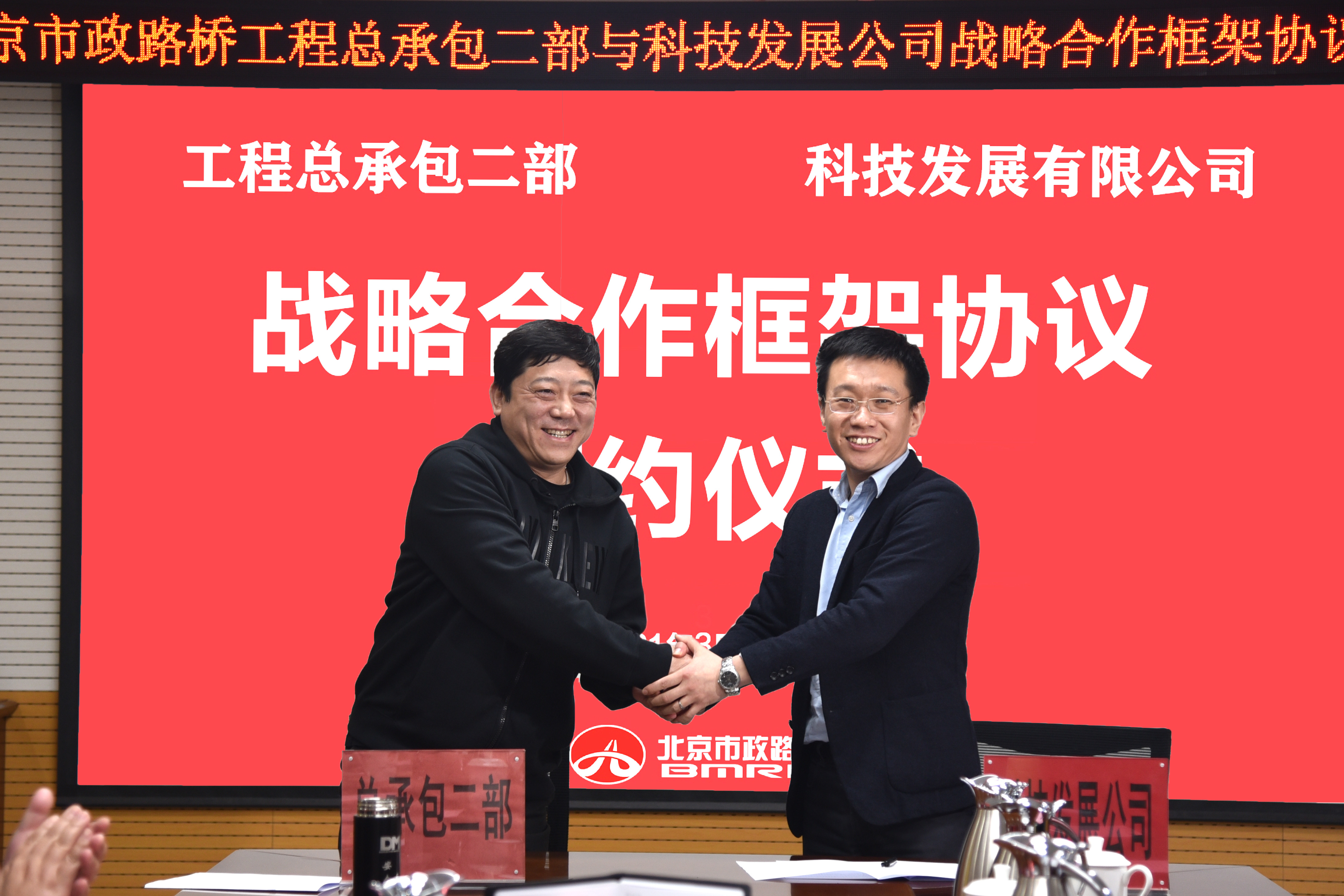 3月12日下午,在一片热烈的掌声中,科技发展公司党委副书记、总经理王晓东与总承包二部副经理徐霖,在战略合作协议上郑重签名,建立全面战略合作伙伴关系。双方本着“互惠互利、优势互补、共同发展”的原则,在围绕轨道交通工程、城市道路桥梁工程、综合管线工程等市政设施建设领域,开展科技课题研究、检测监测、工程监理与咨询等深入合作,实现优势互补,合作共赢。