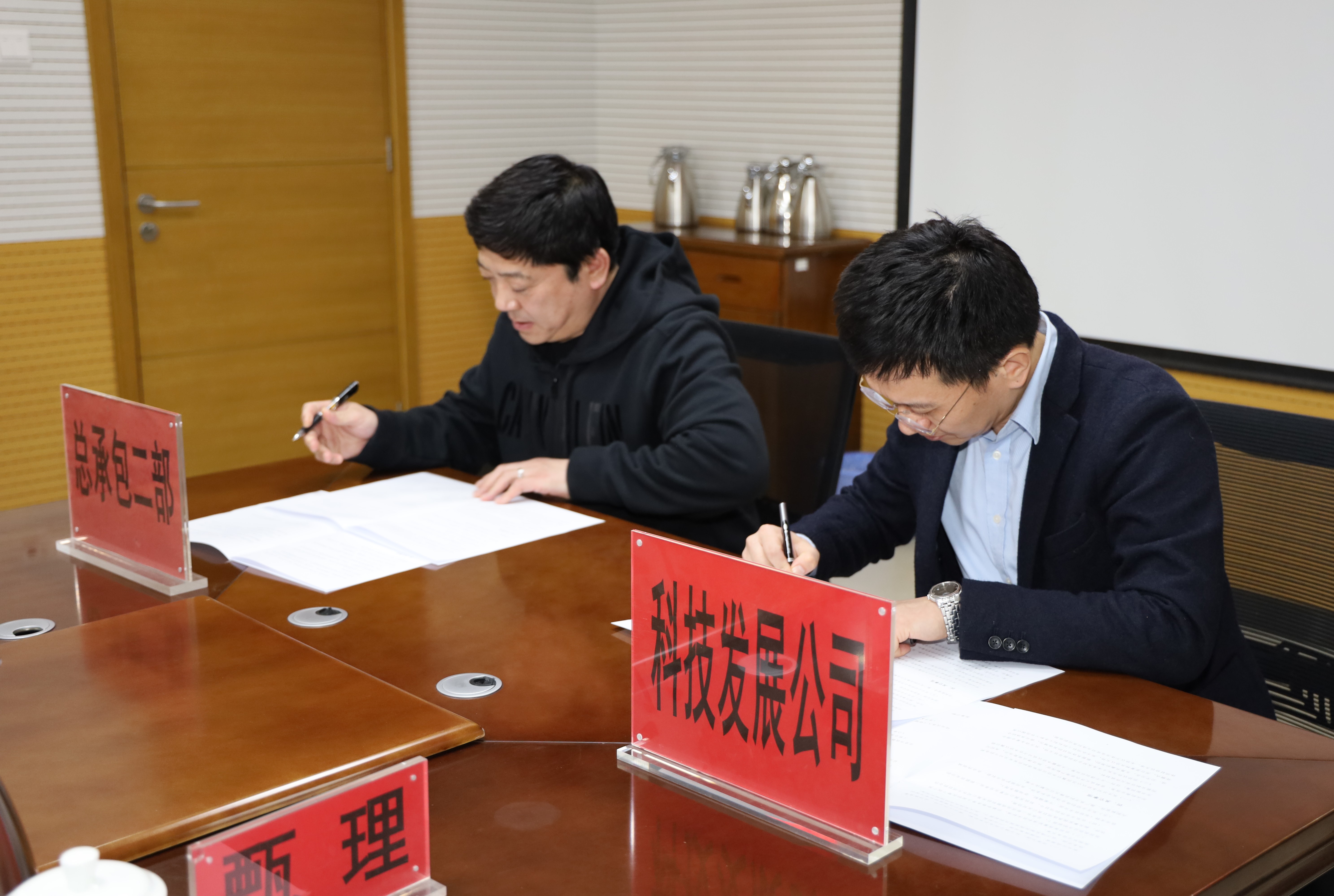 签约仪式在总承包二部举行,科技发展公司党委书记、董事长杨东波,党委副书记、总经理王晓东,党委副书记、工会负责人罗桂铭,三检所党总支书记、总经理彭国荣。总承包二部党委书记李铭,副经理徐霖,党委副书记、纪委书记、工会主席杨继军,副经理肖双全、石效民,以及双方单位相关部室负责人出席签约仪式。仪式由总承包二部副总经理石效民主持。