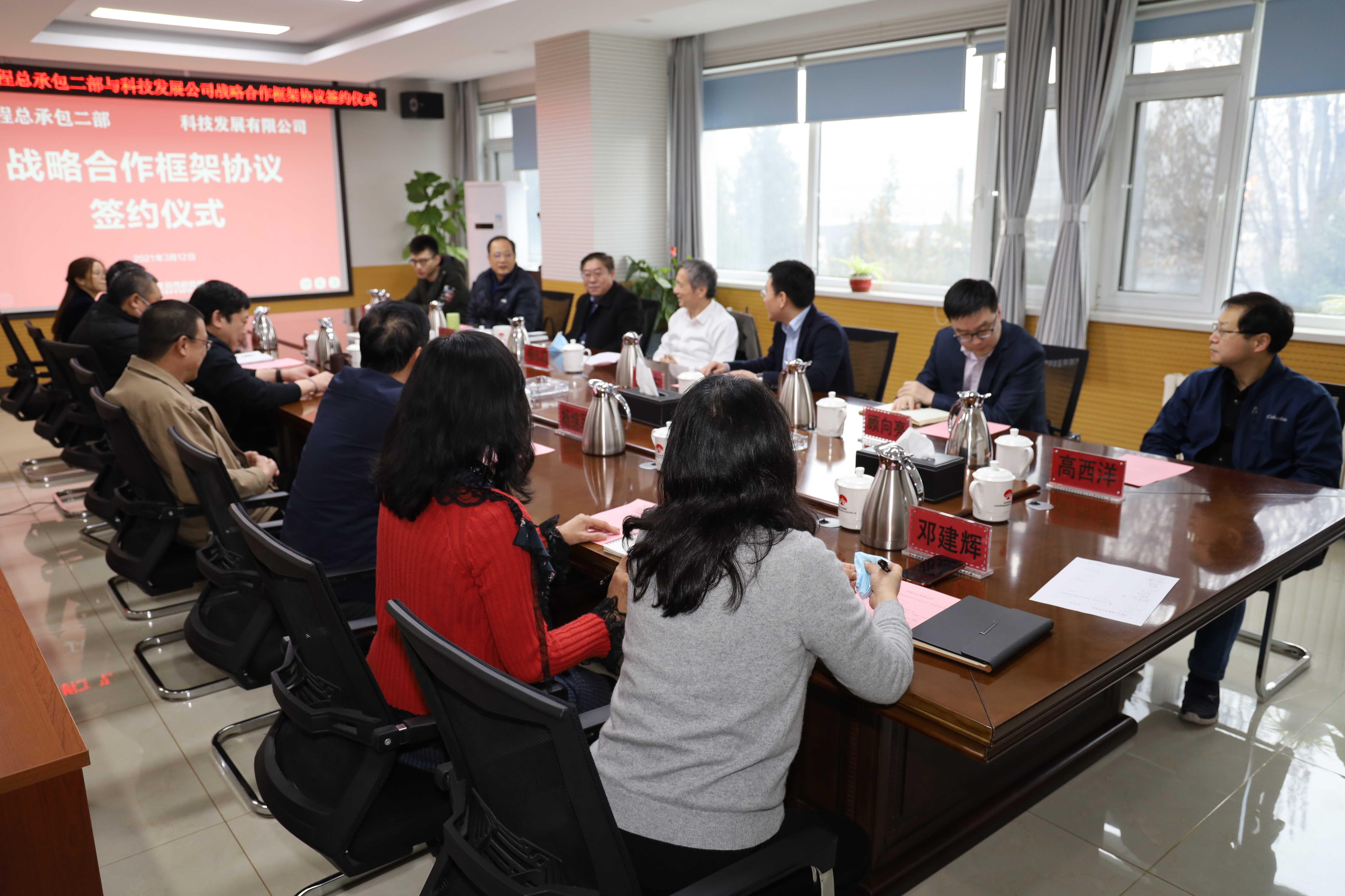 总承包二部党委书记李铭回顾了两家单位在贵阳地铁、绍兴地铁等项目的合作情况。他表示,总承包二部与科技发展公司在过去的合作中结下了深厚情谊。科技发展公司底蕴厚重,具有重大项目技术服务经验和科技研究成果,是一个值得信任、坚实可靠的合作伙伴,希望与科技发展公司优势互补,共同把合作推向一个新高度,实现共赢。