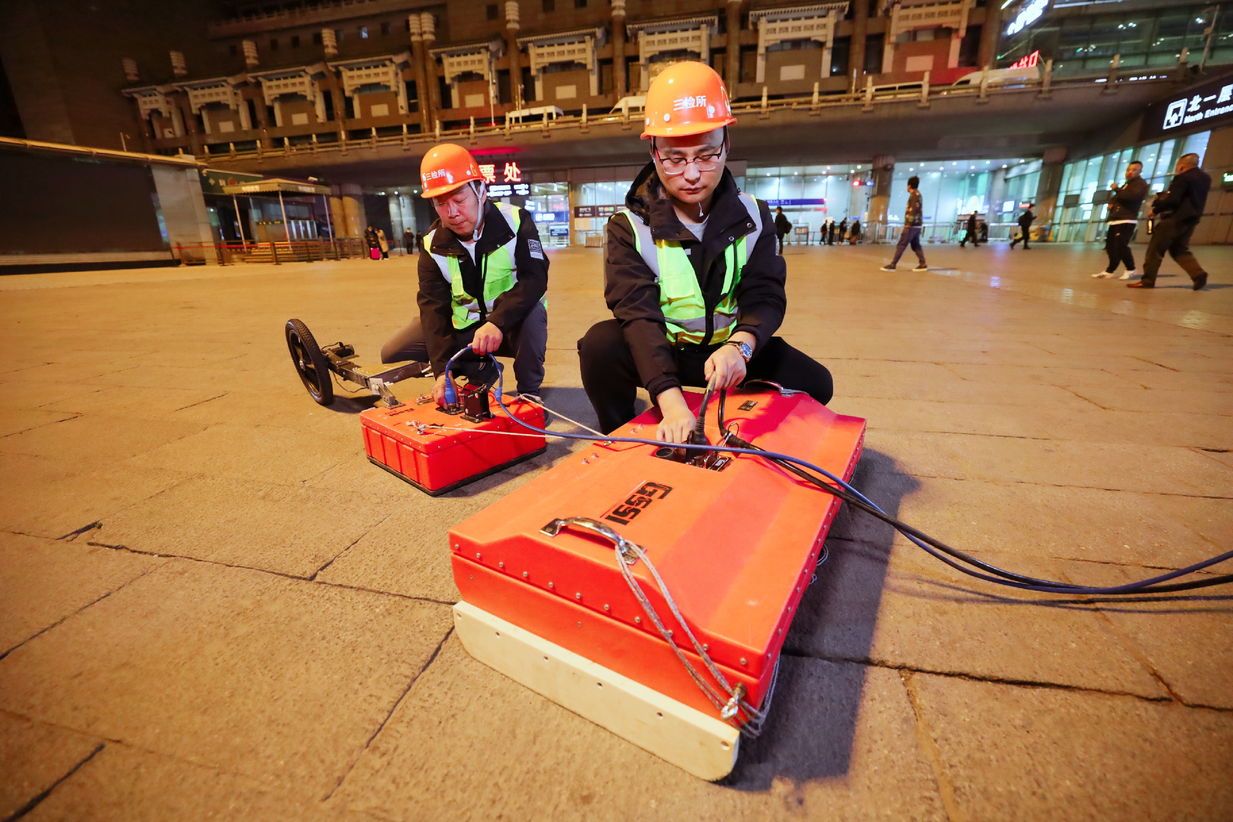 ▲科技发展公司三检所道桥中心的检测人员使用雷达对道路进行探测,就如同医生为病人做“CT”。