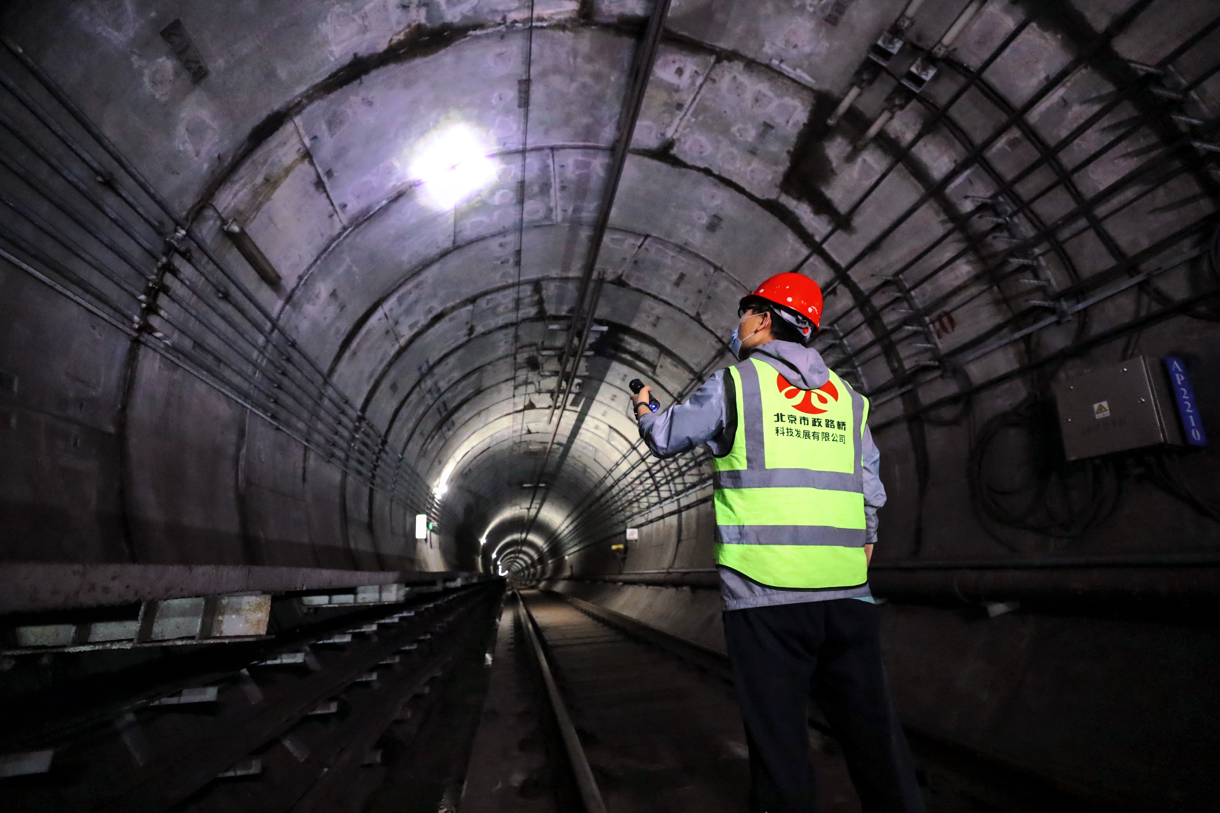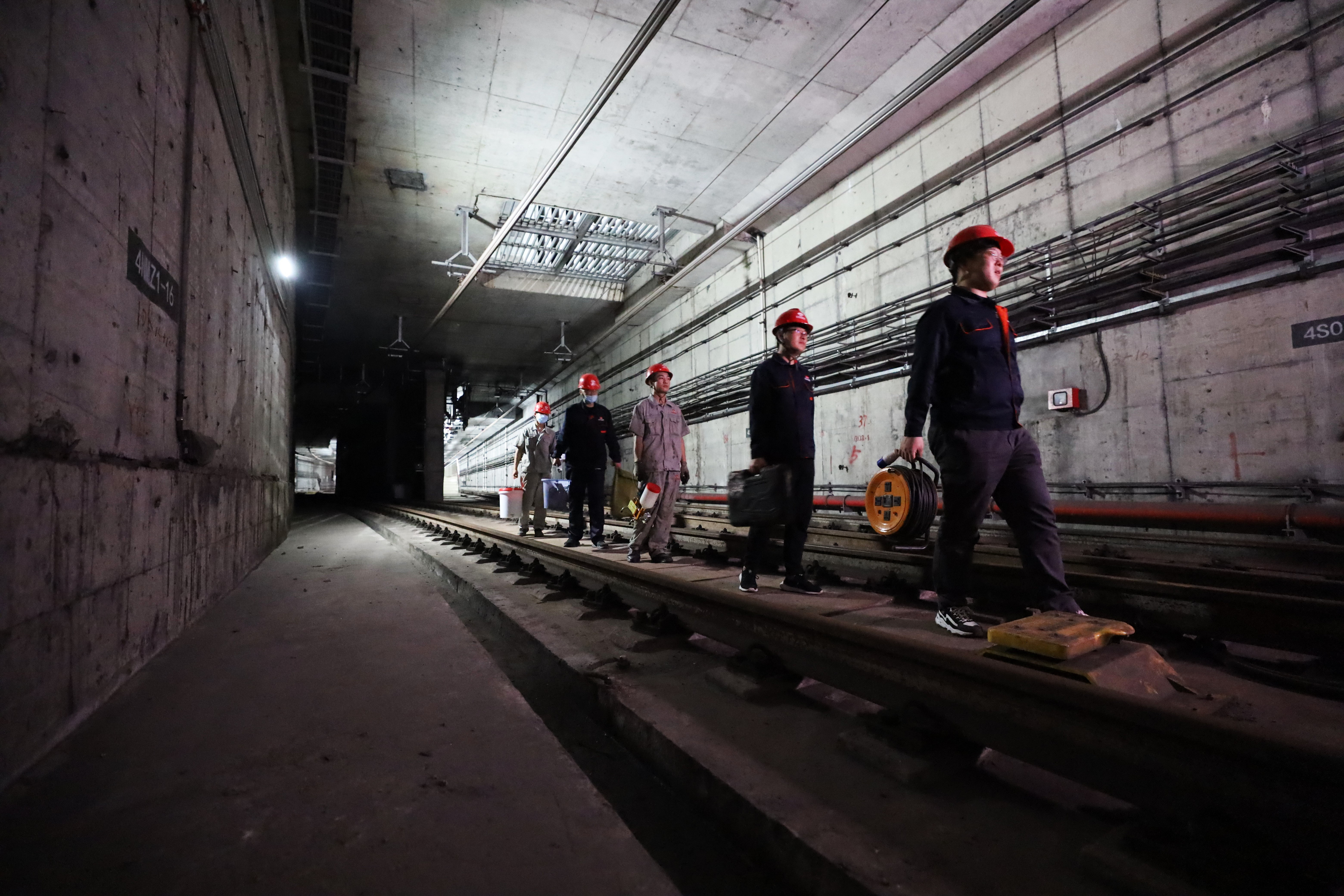 ▲夜晚寂静的隧道中,坚定的脚步代替了隆隆的车声。