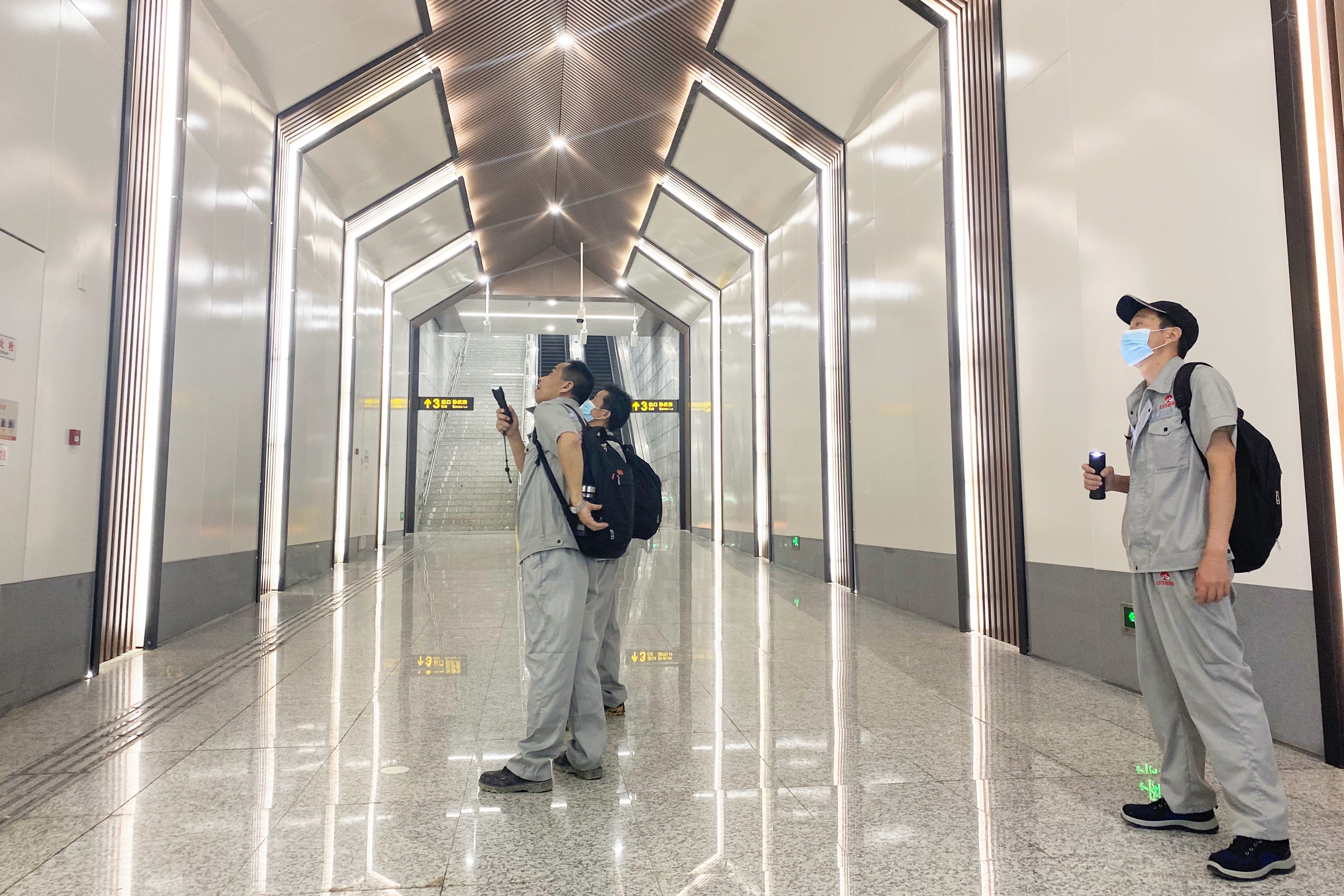 苏州轨道交通5号线于6月29日开通运营,全长约44.1公里,共设置34座车站,是苏州东西向骨干线路。在有效缓解中心城区交通压力的同时,也面临着运营初期人流高峰超2000人的高压运力。苏州维保项目部在“一级保障”期间,采用三班制,每班6人,每人负责5站,重点对车站主体结构和关键设备房进行安全隐患排查,真正做到24小时保障无死角。
