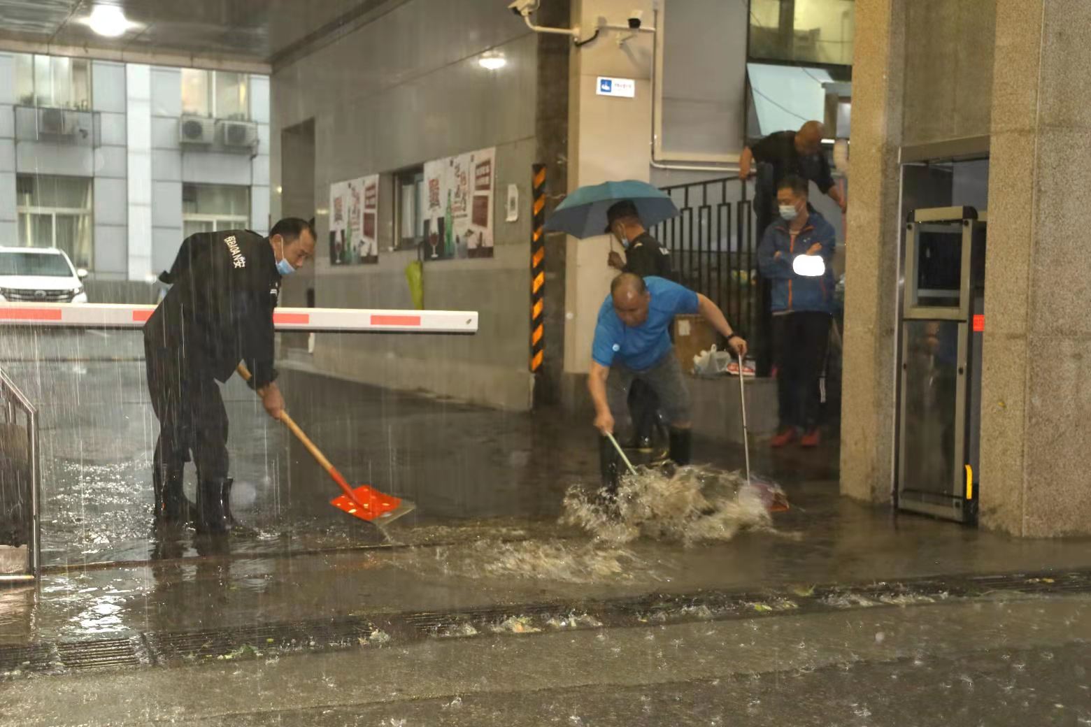 周一早高峰,暴雨骤降,公司院内雨水瞬间激增,为防止内涝,行保部值守人员立即进入防汛临战状态,由科技发展公司总经理助理孙源带队,保安、保洁、后勤等10余人奋战在大雨前线,清理雨水口、检查供电线路、清点防汛器材···他们忙碌的身影成为周一清晨最动人的风景。