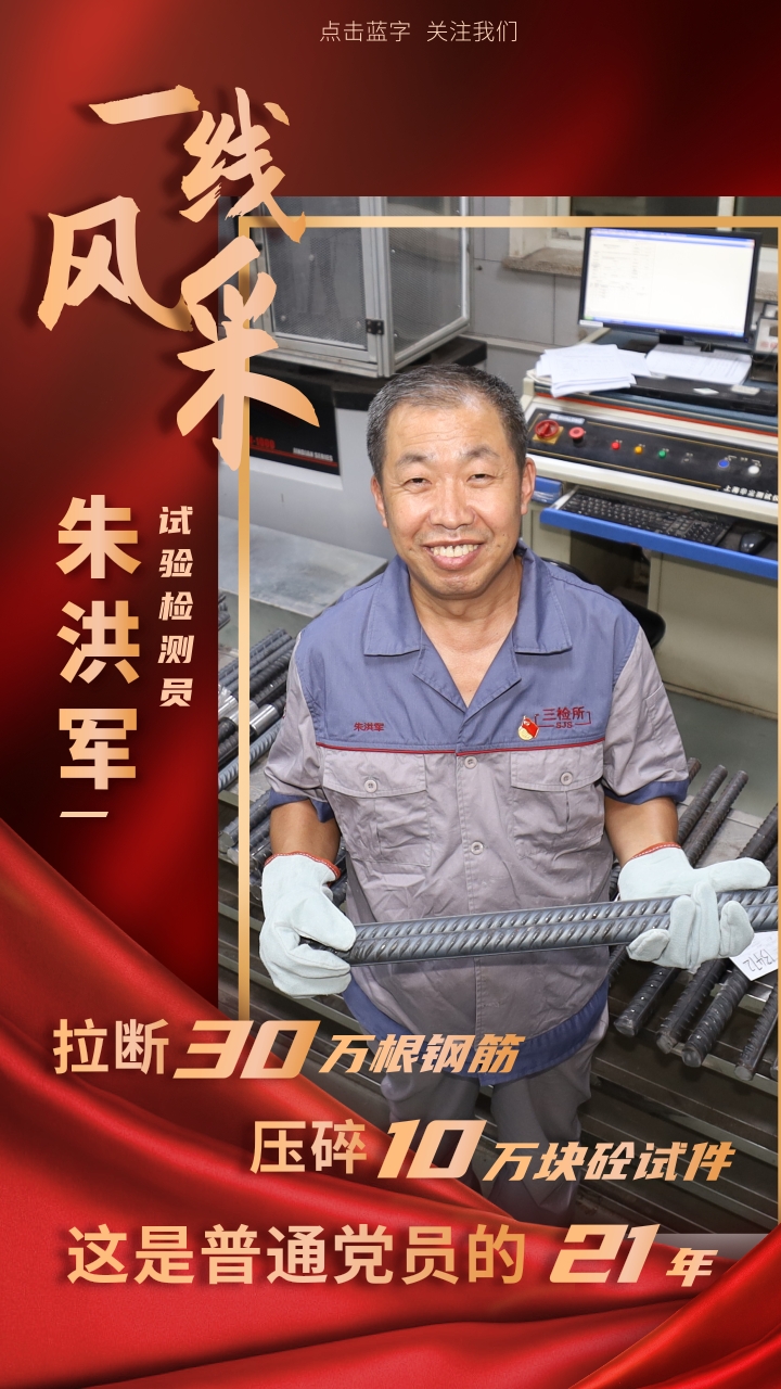 科技发展公司三检所试验中心有一位低调朴实、不善言辞,脸上却总挂着憨厚笑容的老师傅,他就是试验检测员朱洪军。朱师傅虽然是位“老同志”,但却是个“新党员”,1968年生人的他,在50岁那年选择了终身的信仰,加入了中国共产党。党龄只有3年的朱师傅,却在平凡的工作岗位上工作了21年。