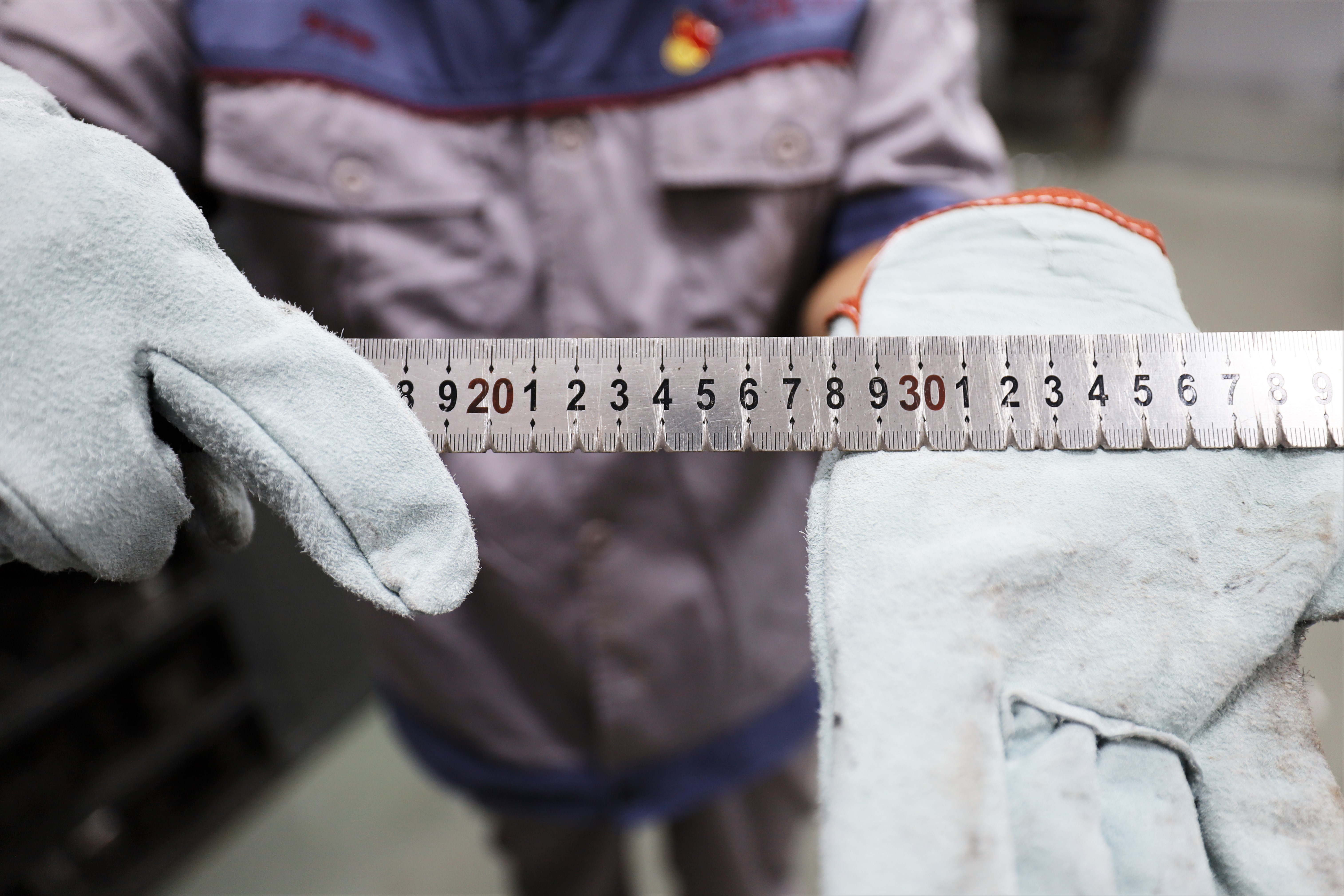 走进钢筋力学试验室,明亮、整洁、有序的试验环境映入眼帘,这里就是朱师傅工作的地方,与高大的专业设备相比,朱师傅手边这把满是锯齿状的钢板尺却格外吸引目光。